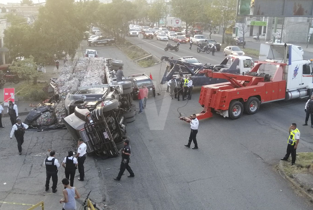 Redacción / La Voz de Michoacán Morelia, Michoacán. Un tráiler que transportaba material reciclable volcó cuando circulaba sobre la avenida Madero Poniente, en la ciudad de Morelia. Un ocupante de la unidad sufrió leves contusiones. El accidente ocurrió la tarde noche de este jueves, sobre la lateral de la citada vialidad, esquina con la calle Manuela Medina, a la altura de la colonia Niño Artillero, en el sentido de Villas del Pedregal hacia el Periférico Paseo de la República. Automovilistas y peatones reportaron el percance e inmediatamente llegaron los elementos de Bomberos Morelia, así como oficiales municipales y de la Policía Michoacán. Las referidas corporaciones otorgaron ayuda y abanderaron la escena para evitar otro incidente. Respecto al lastimado, él responde al nombre de Edgar, quien fue atendido en una farmacia y no requirió traslado hospitalario, comentaron contactos policiales. Agentes de Tránsito se encargaron del peritaje correspondiente y pidieron el apoyo de grúas, a efecto de retirar el tractocamión siniestrado, el cual es un International, color negro, con matrícula 21AD7U.