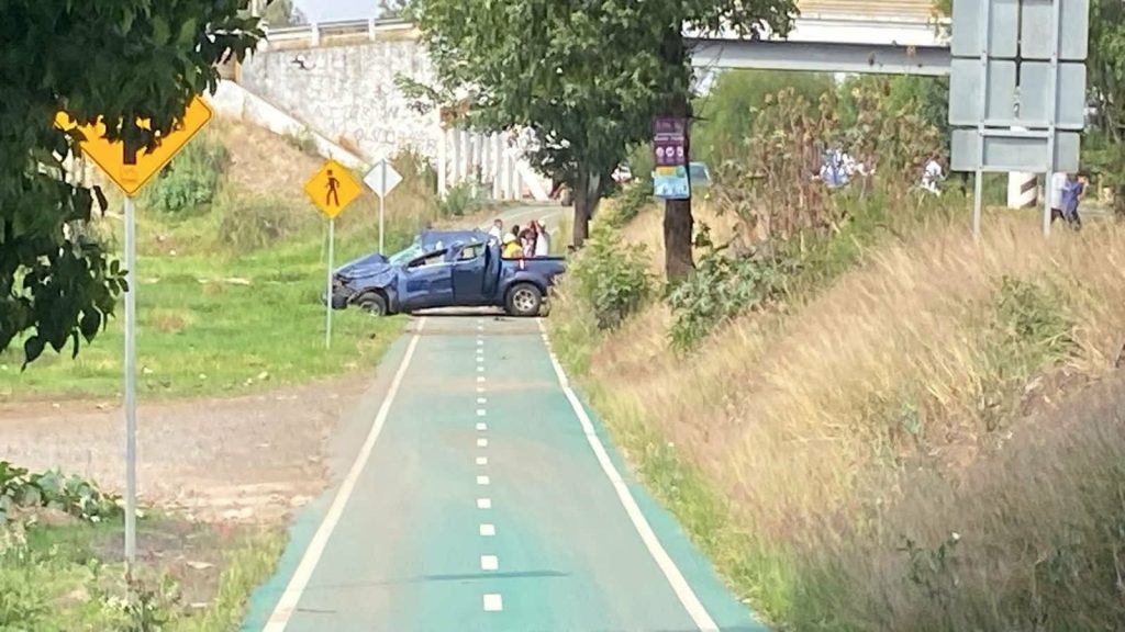 La camioneta volcó sobre ciclovía en la Morelia-Pátzcuaro.