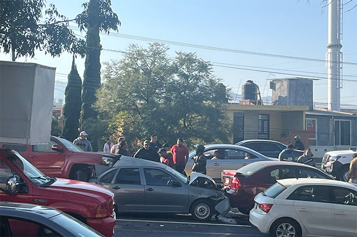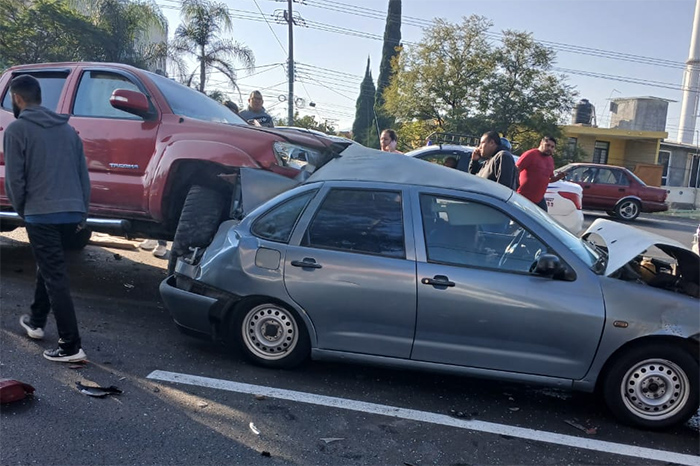 Redacción / La Voz e Michoacán Morelia, Michoacán. La mañana este viernes se registró una carambola vehicular en el libramiento de la capital michoacana, con saldo de 4 personas lastimadas, una de ellas que requirió traslado al hospital. El accidente ocurrió en el Periférico Paseo de la República, en las inmediaciones de la colonia Josefa Ortiz de Domínguez, frente a la tienda Costco, en el que estuvieron involucrados 4 vehículos, entre ellos una camioneta Tacoma, la cual presuntamente se quedó sin frenos, impactando por la parte trasera a un auto color gris, provocando el choque por alcance de dos autos más. Al lugar acudieron paramédicos del Centro Regulador de Urgencias Médicas, quienes valoraron a los ocupantes de los vehículos. Debido a este hecho, se registra tráfico pesado en la zona, en tanto que personal de la Guardia Civil apoya con labores viales.