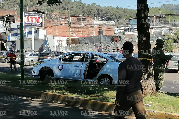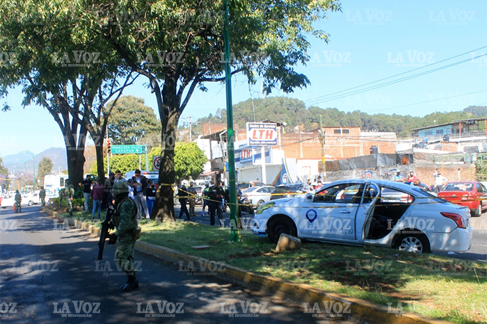 Redacción / La Voz de Michoacán Uruapan, Michoacán. Cuatro muertos y dos lesionados fue el saldo que dejaron dos ataques a balazos perpetrados por gatilleros en diferentes puntos de la ciudad de Uruapan. Después de citados homicidios, los probables hechores y elementos policiales protagonizaron dos enfrentamientos, trascendió en la labor noticiosa. De acuerdo con información proporcionada por fuentes allegadas al tema, durante la mañana de este martes, unos empistolados mataron a un hombre sobre la avenida San Francisco, a un costado de la Comisión Federal de Electricidad (CFE), luego escaparon. Transcurridos pocos minutos, unos sujetos armados abrieron fuego contra los ocupantes de un taxi de la organización Plus Morelia, el cual circulaba sobre la Calzada Juárez, a pocos metros del Hospital del IMSS; en el lugar fallecieron tres personas y dos más quedaron heridas, entre ellas una mujer. Foto: La Voz de Michoacán. Una vez perpetrado el crimen, los agresores huyeron en un Chevrolet Aveo, color blanco, pero fueron interceptados por patrulleros de Tránsito sobre Calzada Juárez y Chiapas, entonces se registró un tiroteo. Los delincuentes llegaron a la calle Rosal, donde abandonaron su unidad, subieron a otro automotor de alquiler, de la línea Vicente Guerrero, y continuaron la fuga hacia la colonia La Mora, sitio donde se toparon con policías estatales y de la Guardia Nacional, entonces sucedió un segundo enfrentamiento. Los sospechosos, al verse acorralados, optaron por retirarse de inmediato e ingresaron a un tianguis, lugar donde los uniformados los perdieron de vista. A raíz de lo anterior, diferentes corporaciones policiales efectuaron un operativo en distintas zonas, pero hasta el momento no hay detenidos. Las instancias competentes ya realizan las investigaciones respectivas. Foto: La Voz de Michoacán. Foto: La Voz de Michoacán.