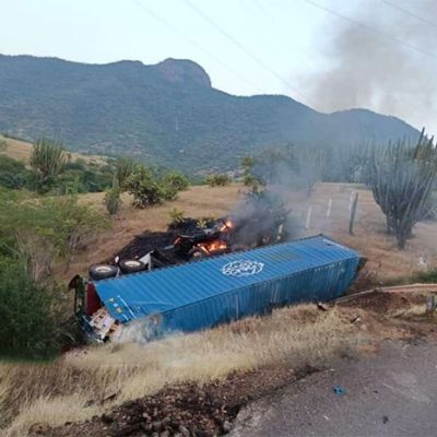 Redacción / La Voz de Michoacán Arteaga, Michoacán. Un choque múltiple en el que según los primeros datos, se vieron involucrados un camión nodriza, dos tráileres y un autobús dejó como saldo preliminar un fallecido, tres lesionados y la unidad que trasladaba autos nuevos incendiada, en la Autopista Siglo XXI. Fue la noche de este martes cuando usuarios de la carretera de peaje comenzaron a reportar el encontronazo a la altura del kilómetro 256, cerca de la población de infiernillo donde a consecuencia de la colisión uno de los tractocamiones cayó a un desnivel y la nodriza ardió en llamas, bloqueando por completo la vialidad en el tramo Las Cañas - Feliciano. En la zona se presentaron para otorgar ayuda oficiales de la Guardia Civil de Transito y Movilidad, Guardia Nacional, Bomberos y Paramédicos, mismos que emprendieron las tareas de rescate y para sofocar las llamas. De forma preliminar trascendió que lamentablemente uno de los conductores perdió la vida en el lugar mientras que al menos tres personas más fueron trasladadas a hospitales con diversas lesiones. POR LA MAÑANA, OTROS DOS FALLECIDOS Alrededor de las 7 de la mañana del mismo martes, un choque frontal entre dos tráileres dejó como saldo dos personas muertas, un lesionado y cuantiosos daños materiales, accidente que también provocó el cierre de la circulación vehicular por varias horas. Ocurrió a la altura del kilómetro 185, en las cercanías de la población de San Pedro Barajas, donde una de las unidades involucradas comenzó a incendiarse y la otra se precipitó a un desnivel por fuera de la carpeta asfláltica.
