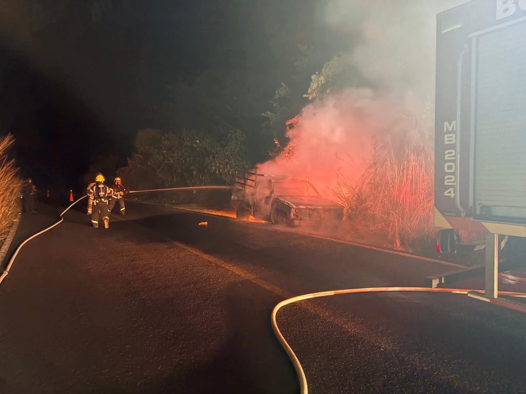 Redacción / La Voz de Michoacán Tacámbaro, Michoacán. - Debido a una falla mecánica, una camioneta se incendió durante la noche de ayer domingo sobre la carretera Tacámbaro–Puruarán, indicaron fuentes de rescate y policiales. El accidente se registró a la altura de la población de Petembo, municipio de Tacámbaro, y fue reportado por varias personas al número de emergencias. Al lugar arribaron los bomberos locales, quienes combatieron el fuego hasta que finalmente lo sofocaron. El vehículo terminó totalmente calcinado e inservible; por fortuna no hubo lesionados ni fallecidos. Finalmente, unos oficiales de Tránsito realizaron las acciones conducentes y solicitaron una grúa para retirar los restos de la unidad quemada.