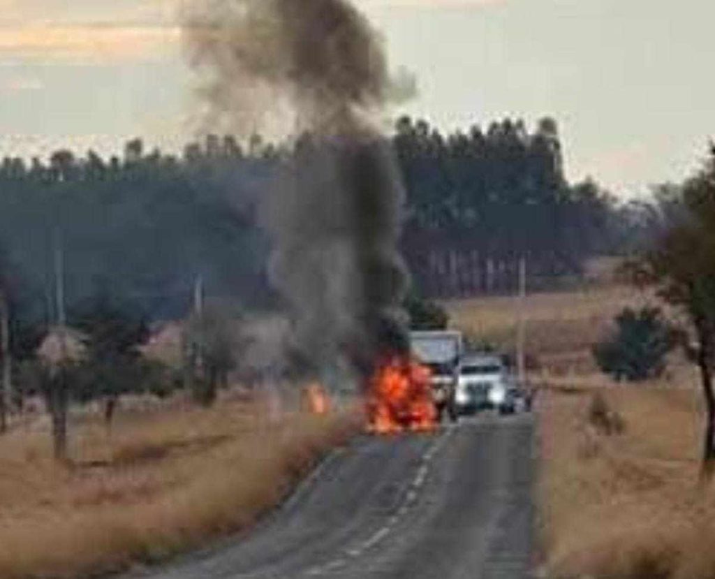 Zinapécuaro, Michoacán. Debido a una falla mecánica, una camioneta ardió en llamas sobre la carretera Morelia-Maravatío. Por fortuna no hubo lesionados, informaron autoridades policiales y de rescate.