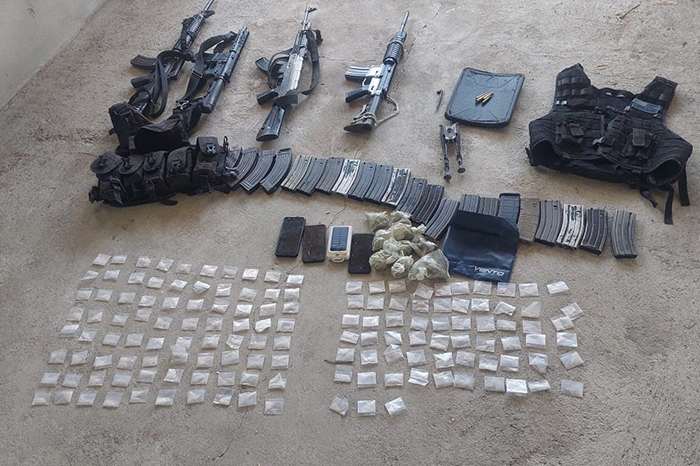 Redacción / La Voz de Michoacán Copándaro, Michoacán. Resultado de los operativos para la prevención de ilícitos, la Secretaría de Seguridad Pública (SSP), logró detener a cuatro personas del sexo masculino, junto a varias armas, municiones, droga y equipo táctico; lo anterior, en el municipio de Copándaro. Mientras los efectivos de la Guardia Civil, en conjunto con personal de la Guardia Nacional (GN), mantenían recorridos de vigilancia sobre la localidad de Arúmbaro, visualizaron a varias personas huyendo de una casa -al parecer abandonada-, por lo que de inmediato efectuaron un dispositivo de seguridad en el sitio. Al realizar las acciones correspondientes, lograron asegurar a cuatro hombres junto a cuatro armas largas tipo R-15, M16, M-4 y AK47, 127 cartuchos útiles para calibre 7.72x39mm y 550 para calibre 5.56mm. También, los agentes aseguraron 25 cargadores y un chaleco balístico. Además, fueron incautados 131 envoltorios con sustancia granulosa -al parecer metanfetamina- y nueve con hierba verde y seca, conocida como marihuana. Los ahora indiciados y lo decomisado fueron puestos a disposición de la autoridad correspondiente, quien continuará con las indagatorias de Ley. La SSP reitera su compromiso por salvaguardar la integridad de las personas, y con esas acciones, lograr la pacificación del estado.