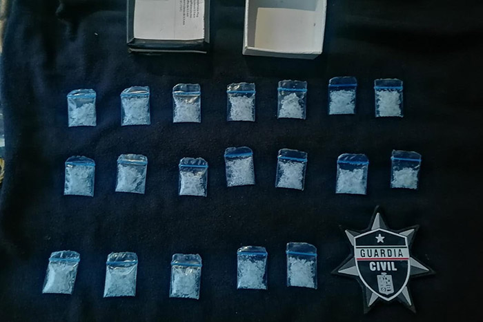 Redacción / La Voz de Michoacán Zitácuaro, Michoacán. Durante los trabajos operativos efectuados en la región Zitácuaro, el personal de la Guardia Civil aseguró a tres personas en posesión de droga, al parecer metanfetamina, y se presume que uno de ellos es supuesto operador de un grupo delincuencial. Fue cuando los agentes hacían recorridos preventivos por la localidad de Zirahuato de Los Bernal, cuando detectaron a tres personas del sexo masculino a bordo de un vehículo de la marca Volkswagen, Pointer, mismos que al notar la presencia de los uniformados intentaron evadirlos, pero los agentes les dieron alcance metros más adelante. Al realizarles la inspección competente a los ahora imputados, los oficiales hallaron una caja de color blanco en la guantera del auto, en cuyo interior había 19 envoltorios de plástico transparente con una sustancia granulada con las características propias de la metanfetamina; asimismo, se presume que uno de los detenidos opera en un grupo delictivo, por lo que será la autoridad respectiva la que haga las indagatorias pertinentes. Los masculinos, la droga y el vehículo fueron puestos a disposición ante la autoridad correspondiente. Con acciones de vigilancia y proximidad es como la Secretaría de Seguridad Pública actúa contundentemente para combatir a la delincuencia, objetivo del gobierno de Alfredo Ramírez Bedolla.