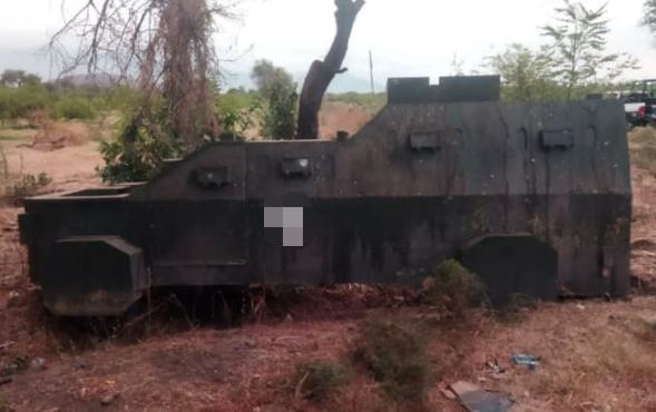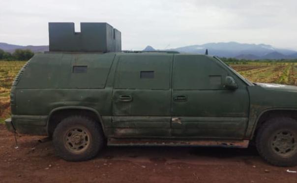 Redacción / La Voz de Michoacán Apatzingán, Michoacán. Luego de los operativos interinstitucionales implementados en Apatzingán, luego de que se registrara la quema de tres vehículos y fuera vandalizada la entrada a una tienda OXXO de Apatzingán, las autoridades localizaron a un sujeto presuntamente abatido en un enfrentamiento entre civiles, aseguraron dos vehículos con blindaje artesanal y destruyeron un narcocampamento. Se supo que en la comunidad de Lomas de los Hoyos, elementos de Sedena, Guardia Civil y Guardia nacional encontraron en una zanja a un costado de la cinta asfáltica, un vehículo de fabricación artesanal, de los denominados "monstruos", de color verde. Al revisar el área los uniformados ubicaron también un cadáver baleado del sexo masculino, hasta el momento sin identificar, de 1.65 metros de estatura, de tez moreno clara, de complexión robusta, el cual vestía camisola pixelada de color negro, , pantalón de mezclilla de color azul, botas tácticas de color verde y negro. Además, las fuerzas del orden aseguraron una segunda unidad blindada, presuntamente usada por una célula delictiva, así como 3 armas largas, 28 cargadores, 1,487 cartuchos útiles, 4 placas balísticas y 2 chalecos. Aunado a lo anterior, en la comunidad de Las Bateas los militares y policías realizaron ubicaron y destruyeron un campamento que se presume era utilizado por integrantes de un grupo delictivo. Mientras que en la localidad de Llano Grande fueron asegurados otros cinco cargadores y 293 cartuchos útiles de diversos calibres. De todo lo anterior se dio parte a las autoridades competentes para que se realizaran las actuaciones correspondientes y la puesta a disposición de lo incautado.