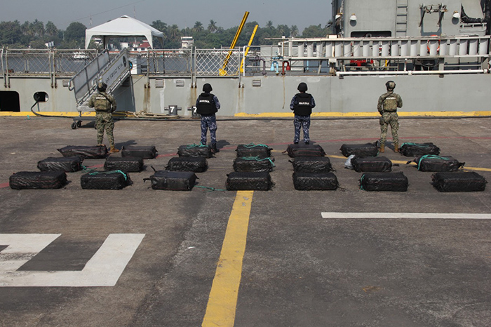 Redacción / La Voz de Michoacán Lázaro Cárdenas, Michoacán. La Secretaría de Marina a través de la Armada de México, aseguró más mil quinientos kilogramos de cocaína que era transportada en dos embarcaciones, además requirió a 7 presuntos implicados, en las costas michoacanas. Según informó la Semar, el aseguramiento de dos embarcaciones menores con motores fuera de borda, se dio aproximadamente a 120 millas náuticas (222 kilómetros) al Suroeste del puerto de Lázaro Cárdenas. Lo anterior como parte de las operaciones de vigilancia marítima, en las que se tuvo conocimiento de actividades irregulares que se realizaban en la jurisdicción de la Décima Cuarta Zona Naval, por lo que se desplegó personal para su intercepción. Fue así que los marinos aseguraron una primera unidad con dos tripulantes a bordo, quienes transportaban 11 bultos, y la segunda con cinco tripulantes quienes transportaban 10 bultos que contenían cocaína. Foto: Semar Los detenidos, así como las embarcaciones y la carga asegurada, fueron puestas a disposición ante el Ministerio Público Federal, para se continúen con las investigaciones correspondientes. Es de señalar que en caso de que la droga hubiera llegado al mercado negro, habría dejado una ganancia para el crimen organizado de aproximadamente 375 millones de pesos, según refirieron fuentes de inteligencia.