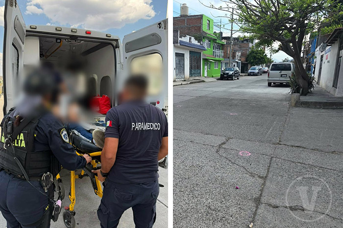 Redacción / La Voz de Michoacán Morelia, Michoacán. Dos sujetos armados dispararon contra igual número de jóvenes que viajaban en una motocicleta en la colonia La Esperanza, ubicada al poniente de Morelia. Según fuentes allegadas al tema, tras el atentado los hechores huyeron en una moto. Además, una de las víctimas quedó malherida y fue auxiliada por rescatistas; la otra, quien al parecer también resultó lesionada, se retiró en su vehículo birrodante. El móvil del ataque es, hasta el momento, desconocido. El hecho ocurrió durante la tarde de este martes, sobre la calle Joaquín Campa, esquina con Sebastián Campos. Las detonaciones fueron reportadas por vecinos al número de emergencias.Oficiales y paramédicos auxilian a una de las víctimas Al lugar acudieron patrulleros municipales y paramédicos, pero solo hallaron a uno de los ofendidos, a quien le otorgaron las primeras curaciones y lo canalizaron a un hospital para su adecuada atención médica. La identidad del paciente no fue expuesta; tiene entre 19 y 23 años de edad. Foto: La Voz de Michoacán. Los delincuentes ya los esperaban Cámaras de videovigilancia lograron capturar el momento de la agresión. En el material videográfico se aprecia que los ahora ofendidos transitaban lentamente en su motocicleta sobre la calle Joaquín Campa, con dirección hacia la calle 15 de Septiembre; sin embargo, al llegar a la calle Sebastián Campos, eran esperados por los empistolados, quienes también usaban cascos para ocultar su identidad. Al tenerlos en la mira, se observa que uno de los criminales se aproxima a sus objetivos, abre fuego contra ellos y los hiere. Los afectados aceleraron para alejarse del peligro, en tanto que los perpetradores subieron a una moto negra y emprendieron la huida con dirección a Ciudad Jardín. Foto: La Voz de Michoacán. Foto: La Voz de Michoacán. Patrulleros y militares buscan a los perpetradores El área del hecho violento fue acordonada por los patrulleros, pues en el suelo había varios casquillos percutidos; además, los proyectiles dañaron el portón de una casa.Elementos de la Fiscalía General del Estado (FGE) emprendieron las investigaciones correspondientes y embalaron los indicios. Asimismo, agentes municipales, apoyados por la Guardia Nacional, Guardia Civil y el Ejército Mexicano, revisaron la colonia y asentamientos aledaños en busca de los perpetradores, pero no lograron ubicarlos.