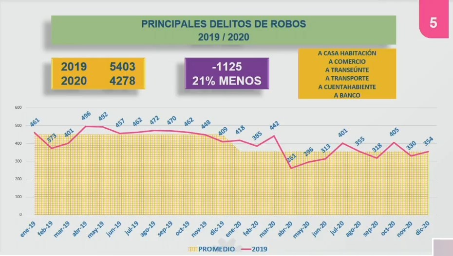 Osiris Olachea / La Voz de Michoacán Morelia, Michoacán. En los últimos dos años se ha reducido el delito de robo a casa-habitación, a transporte, a comercios y a transeúntes en Michoacán, pero no a cuentahabientes y bancos, que prácticamente no han presentado una reducción significativa a pesar de la violencia con que se cometen y que incluso han costado vidas humanas. Tan solo hoy, sujetos armados despojaron de 1 millón 841 pesos en efectivo a un hombre en la zona bancaria de la colonia Las Américas, a pocos metros de la avenida Camelinas, al sur de Morelia. La semana pasada, el 21 de diciembre, otro cuentahabiente también fue víctima de robo: luego de retirar dinero de un banco fue interceptado en la avenida Camelinas, a la altura de la colonia Prados del Campestre, donde le quitaron 346 mil pesos. Y así la de asaltos a usuarios de servicios financieros continúa. Autoridades han reconocido que trabajadores de las instituciones bancarias están involucrados, pero hasta ahora no se han dado a conocer acciones contundentes para detener estos atracos. Aunque la Policía de Morelia mantiene un programa de acompañamiento para quienes así lo deseen, esto tampoco ha ayudado a disminuir este flagelo. En 2019 se registraron en Michoacán 202 asaltos a cuentahabientes y este 2020 suman 191 delitos, es decir, 11 menos en un año, una reducción mínima. En el caso de robos a banco, el año anterior se cometieron 15 delitos y en este solo se han denunciado 4, también una reducción de 11 casos. El titular de la Secretaría de Seguridad Pública (SSP) de Michoacán, Israel Patrón Reyes, indicó que en el resto de los robos hubo una reducción importante en los últimos dos años. En conferencia de prensa, el funcionario detalló que en 2015 en la entidad se registraron 15 mil 839 robos en sus diferentes modalidades, delitos que aumentaron en 2016, 2017 y 2018, año en que alcanzaron 18 mil 546 actos. Sin embargo, en 2019 se registró una disminución notoria, pues se reportaron 17 mil 058 robos, y en 2020, hasta noviembre, se denunciaron 12 mil 768, la cantidad más baja de los últimos 5 años. El funcionario aseguró que, además, hay un incremento en el número de detenciones: mientras en 2015 solo se capturó a 59 personas en todo el año por delito de robo, en este 2020 fueron 586 quienes fueron puestos a disposición de las áreas competentes. En comparación con el año pasado, los robos a casa habitación son los que presentaron una mayor disminución, pues en 2019 se cometieron mil 855 y para este 2020 fueron mil 449, es decir, 406 menos. En robo a transporte, en un año se denunciaron 325 menos delitos, ya que hasta ahora suman mil 62, mientras que en 2019 fueron mil 387. En robo a comercio en un año se registraron 217 menos eventos y a transeúnte 177 menos, de acuerdo con el reporte del secretario de Seguridad. Al presentar el reporte de los robos en Michoacán, Patrón Reyes aclaró que se dejó fuera el robo de vehículo porque tiene “otros matices importantes que en algún otro momento se darán a conocer”. “Sin embargo, también en este esquema, como lo he dicho en otro momento, el tema de robo a vehículo va muy bien”.Israel Patrón Reyes El secretario aseguró que la reducción general en los delitos de robo coloca a Michoacán por debajo del promedio nacional. Destacó que Michoacán se encuentra en el lugar 20 de las entidades con mayor número de robos en diversas modalidades, de acuerdo con la tasa por cada 100 mil habitantes del Sistema Nacional de Seguridad Pública en el periodo enero-noviembre de 2020. Explicó que en el tema de robo se involucran variables socioeconómicas, como bajos ingresos, desempleo, desigualdad social y acciones. Dijo que en el último año se cometieron mil 125 robos menos en las modalidades de robo a casa-habitación, a comercio, transeúnte, a transporte, a cuentahabientes y a bancos, pues en este 2020 suman 4 mil 278, mientras que en 2019 fueron 5 mil 403, es decir, 21 por ciento menos. “Si hacemos una evaluación completa de estos rubros en los últimos dos años, les podemos decir con claridad que tenemos una reducción de 21 por ciento en los delitos de robo en las diversas modalidades que es señalado”.