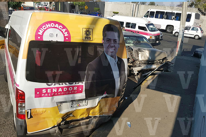 Redacción / La Voz de Michoacán Morelia, Michoacán. Lesionadas quedaron cinco personas tras el choque de una combi de la Ruta Rosa y una camioneta, esto en la esquina de la Calzada La Huerta y calle La Paz, en la ciudad de Morelia, revelaron las autoridades policiales. El accidente sucedió durante la mañana de este martes, a un costado del Panteón Municipal, ubicado en la colonia Morelos. La camioneta implicada en los hechos es de la marca Chevrolet, tipo Adventure, color arena, matrícula PFG-141-X. La combi siniestrada es una Nissan, Urvan, número económico 57, con placa de circulación A-30048-N. Se supo que los heridos son: Alejandro M., Patricia S., Leticia P., María Ofelia S. y Ricardo C. Los pacientes fueron auxiliados por bomberos de Protección Civil Estatal (PCE), así como por paramédicos de otras corporaciones de rescate, quienes los canalizaron a un hospital del Seguro Social. Oficiales de la Policía Michoacán de Tránsito realizaron el respectivo peritaje para determinar responsabilidades y los automotores involucrados fueron llevados a un corralón.