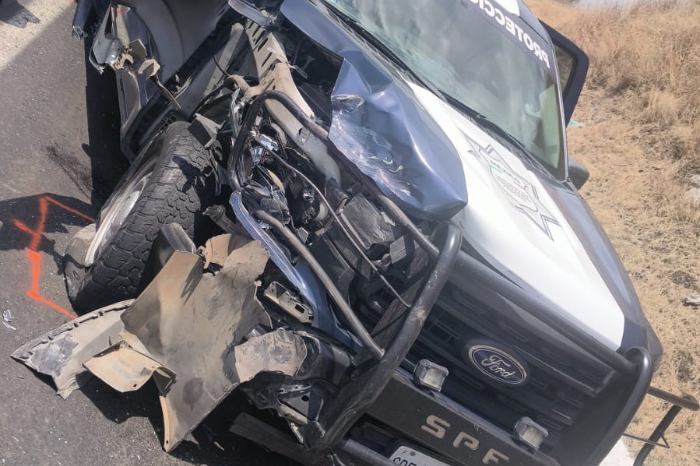 Morelia, Michoacán. - Se registra choque por alcance con impacto lateral en el kilómetro 100+000 del tramo Uruapan – Nueva Italia, entre una camioneta de Protección Federal y un vehículo tipo sedán.
