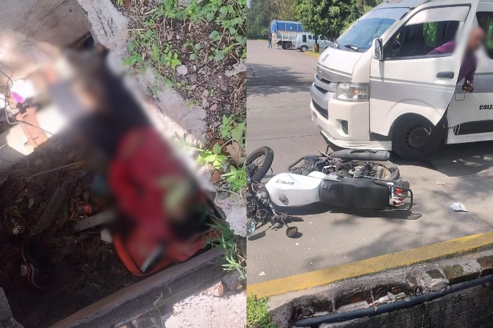 El incidente ocurrió alrededor de las 10:30 horas en la avenida Francisco I. Madero Poniente, a la altura del Bodega Aurrera de Tres Puentes, cuando la motocicleta fue impactada por la combi de la ruta gris 3. Debido al golpe, el conductor cayó dentro de la alcantarilla de aproximadamente 2 metros de profundidad, quedando lesionado.