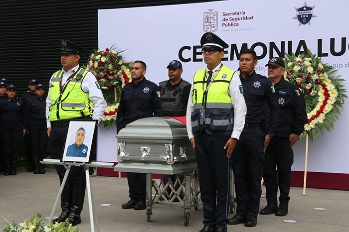 Redacción / La Voz de Michoacán Morelia, Michoacán. Este día, la Secretaría de Seguridad Pública (SSP), rindió homenajes a los elementos caídos en cumplimiento del deber el pasado jueves en la localidad de Felipe Carillo Puerto “La Ruana”, perteneciente al municipio de Buenavista. “Hoy nos reunimos con profundo respeto, dolor, agradecimiento y admiración para rendir un merecido homenaje a valerosos integrantes de la Guardia Civil. Hoy es un día triste para Michoacán, y en especial para su Guardia Civil, sin embargo, este día es digno para reconocer a hombres valientes que sacrificaron su vida por la seguridad de los demás, y que a diario, cuando se levantaban y salían de sus casas, portaban el uniforme con gran honor y orgullo”, mencionó José Alfredo Ortega Reyes, titular de SSP. Fue en las instalaciones de la institución, donde los guardias civiles junto a familiares y autoridades realizaron una ceremonia de despedida, reconociendo el trabajo y compromiso con Michoacán de los agentes Roberto Naranjo Andrade, Calixto Álvarez Andrade y Gamaliel Alcantar Reyes, quienes perdieron la vida cuando realizaban labores de seguridad en Buenavista. “Nuestros compañeros han dejado patente a la ciudadanía que frente a cualquier situación, para un guardia civil proteger la vida de los michoacanos es lo más importante. Para sus compañeras y compañeros son ejemplo de valor, comportamiento, disciplina, disposición y de entrega, incluso de la propia vida. A nombre de los miles guardias civiles de Michoacán, les expresamos nuestra solidaridad personal e institucional, los acompañamos del brazo en su duelo y nos hermanamos en su pena”, finalizó Ortega Reyes. La SSP reitera que continúa con las labores coordinadas junto a FGE y autoridades de los tres niveles de gobierno, para el esclarecimiento de este cobarde ataque. Asimismo, se brinda el apoyo a familiares durante los trámites respectivos.