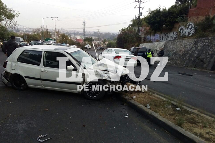 Salvador Rodríguez / La Voz de Michoacán Morelia, Michoacán. Durante la mañana de este viernes se han registrado dos accidente automovilísticos en el libramiento Sur. En el primero de ellos, frente a Casa de Gobierno, se registró un choque-volcadura, donde participaron dos vehículos, un Attos, el cual terminó volcado y una camioneta Jeep. Asimismo, en otro percance en la misma zona dos automóviles se impactaron de frente, terminando uno de ellos en el camellón. No se reportan personas lesionadas de gravedad; ambos accidentes fueron atendidos por elementos de Tránsito del estado.