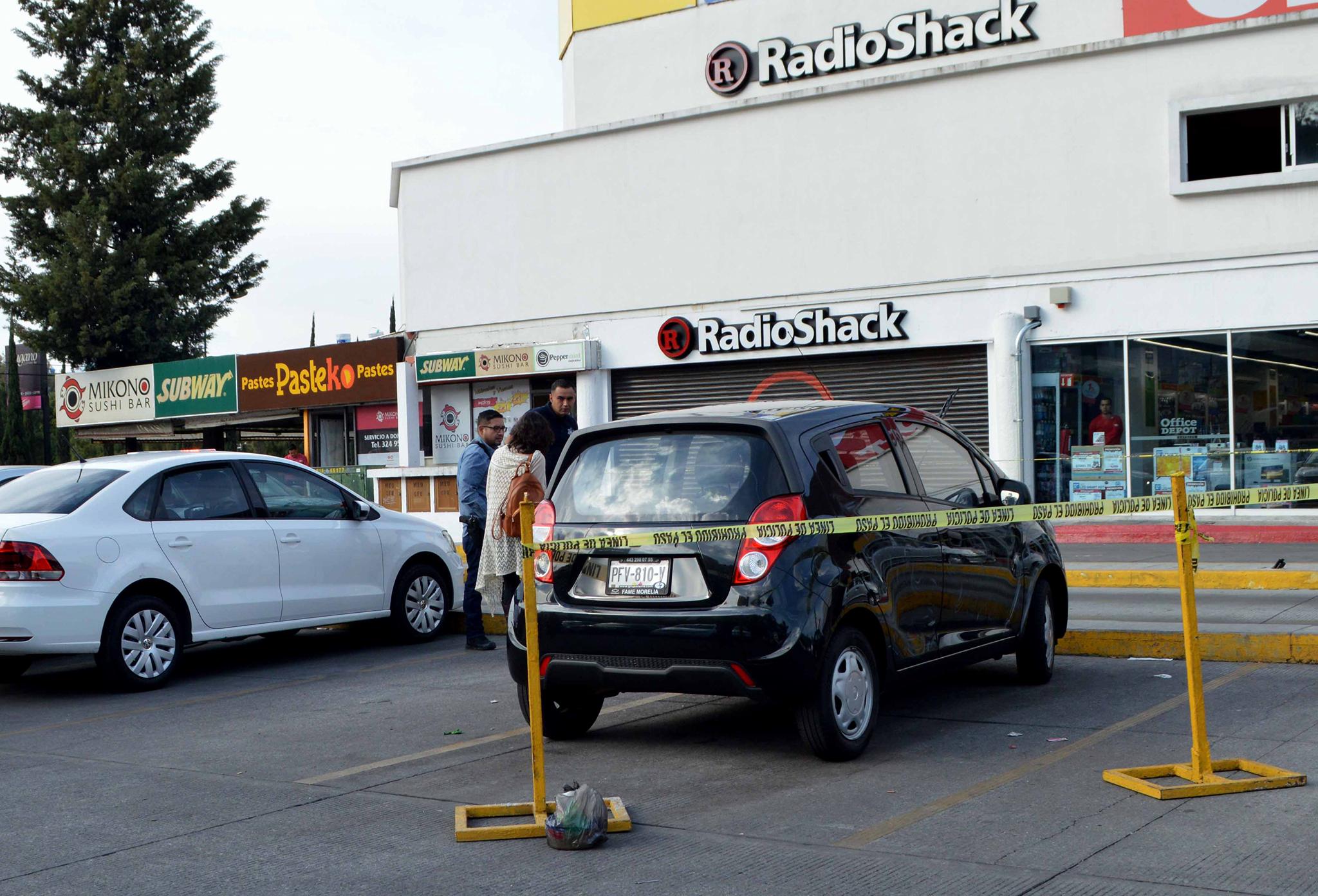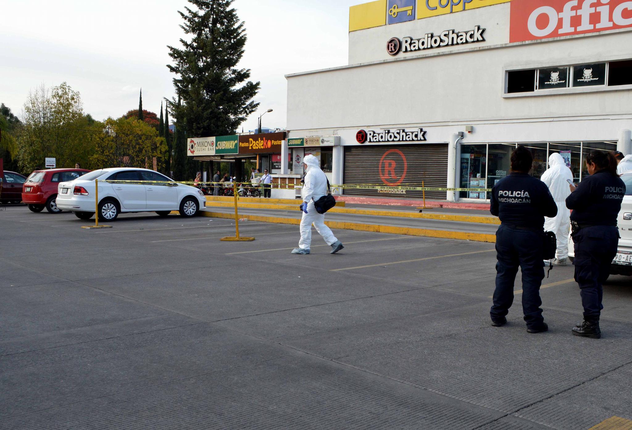 Alejandro Serrano/ La Voz de Michoacán Morelia, Michoacán. Una serie de disparos intercambiaron un delincuente y su víctima en el estacionamiento de Plaza Fiesta Camelinas, esto cuando el primero se le acercó al segundo para asaltarlo. El hecho violento se dio esta tarde en el estacionamiento ubicado en la esquina de las Avenida Ventura Puente y Camelinas, a escasos metros de "La Paloma" y del Centro de Convenciones y Exposiciones de Morelia (Ceconexpo). Afortunadamente no hubo lesionados y tampoco muertos. Algunos testigos comentaron a las autoridades que un hombre había salido de una institución bancaria y se dirigía a su vehículo para abordarlo, pero en ese instante un tipo se le aproximó con el objetivo de atracarlo. Consecutivamente el hombre amagó con una pistola al ciudadano, éste último al verse en peligro también sacó un arma de fuego e hizo correr al maleante. En la huida el rufián efectuó detonaciones y el ofendido igualmente disparó, según dijeron personas que presenciaron el suceso. Minutos después arribaron los elementos de la Policía Michoacán, pero ya no estaba ni el delincuente y menos el agraviado, así que el área fue acordonada y fue asegurado un automotor negro, el cual es de la marca Chevrolet Spark.