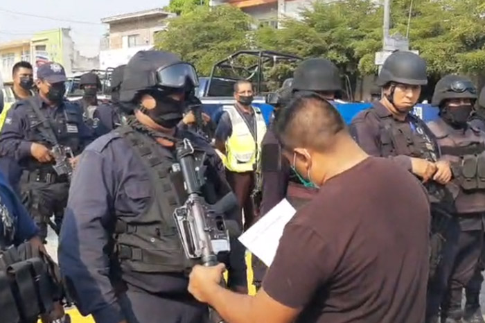 Arturo Molina / La Voz de Michoacán Buenavista, Michoacán.12 armas largas, 7 escuadra y dos revolver fueron requisitados a los elementos de la Policía municipal de Buenavista por incumplimiento en los documentos de licencia y licencia vencida. En revisión a las corporaciones policiales de la región de Tierra Caliente, la Secretaría de Seguridad Pública, desarmó por irregularidades a los elementos municipales. El General José Alfredo Ortega Reyes, secretario de Seguridad Pública en el estado, durante la revisión a las licencias de las armas, informó que encontró diversas irregularidades y por lo cual todos los elementos que fueron desarmados no podrán tener derecho a portar las armas para el cumplimiento de su función. A los elementos desarmados, José Alfredo Ortega les informó que le pidió al presidente municipal aceptarles su renuncia o sigan trabajando bajo el esquema de proximidad. Video: Arturo Molina En paralelo, elementos estatales asumirán las funciones de seguridad pública en la demarcación que, durante meses, ha sido escenario de enfrentamientos entre grupos delincuenciales. Las armas de los policías que incumplieron con el registro de licencias de armas o que están vencidas, fueron 12 armas largas, 7 escuadras y 2 revolver. Video: Arturo Molina. La mañana de este miércoles fueron desplegados cientos de elementos de seguridad de distintas corporaciones para atender las zonas limítrofes de Michoacán. En total son 45 demarcaciones de Michoacán que colindan con distintos estados, entre ellos Jalisco donde se buscará generar un fortalecimiento importante en materia de seguridad. José Alfredo Ortega Reyes, secretario de Seguridad Pública en el estado, llamó a los elementos a poner de su parte y ponerlo todo en la estrategia para contener la ola de violencia que se vive en todas las regiones de Michoacán.