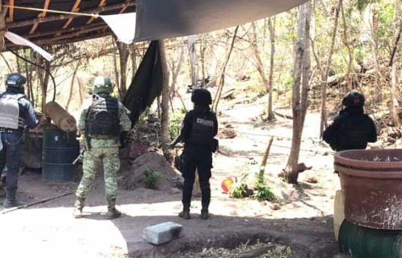 Redacción / La Voz de Michoacán Tumbiscatío, Michoacán. Como parte de las acciones estratégicas para la disuasión del delito en la entidad, los elementos de las secretarías de Seguridad Pública (SSP), y de la Defensa Nacional (SEDENA), así como de la Guardía Nacional (GN), y Fiscalía General del Estado (FGE); aseguraron y desmantelaron cuatro laboratorios, presuntamente utilizados para la elaboración de drogas sintéticas. Las tareas operativas efectuadas por las fuerzas estatales y federales comprendieron barridos de reconocimiento y patrullajes por la brecha que conduce de Tumbiscatío al municipio de Arteaga, sitio donde fueron localizados y destruidos cuatro campamentos empleados para actividades lícitas; también encontraron y aseguraron un vehículo de la marca Ford color azul. Las acciones para prevenir y disuadir el delito continúan de manera permanente en todo el territorio estatal, con la instalación de filtros y puestos de control en varias zonas estratégicas se trabaja para garantizar el libre tránsito. La SSP reitera su compromiso de velar por la seguridad de las y los michoacanos, para así recuperar la tranquilidad y estabilidad social. En caso de solicitar cualquier ayuda, la línea telefónica de emergencia 911 se mantiene abierta los siete días de la semana.