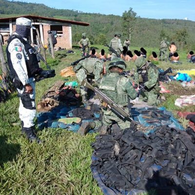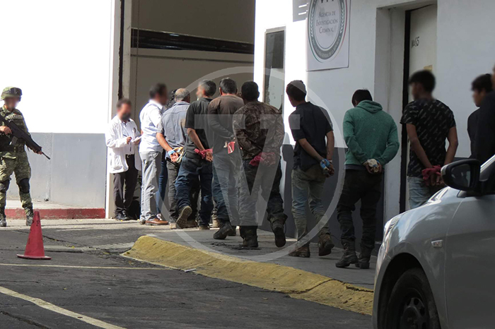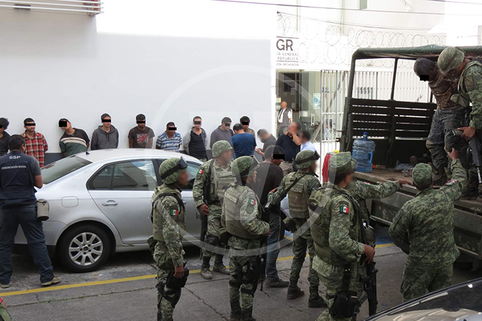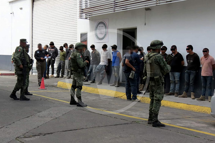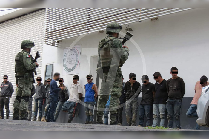 Redacción / La Voz de Michoacán Morelia, Michoacán. Los 37 civiles, entre los cuales hay un menor de edad, capturados por el Ejército Mexicano y Fuerzas Estatales en un narcocampamento de Ciudad Hidalgo, fueron trasladados la tarde de este martes y puestos a disposición de la Fiscalía General de la República con sede en Morelia, donde se habrá de determinar su situación jurídica. Los imputados están relacionados con una célula del Cártel Jalisco Nueva Generación, de los cuales existen indicios de su participación en múltiples delitos y hechos violentos ocurridos en municipios del Oriente michoacano, por lo que ya las instancias competentes laboran en las investigaciones respectivas. Además de una camioneta pick up roja, fue incautado el siguiente armamento: 15 fusiles AR-15.21 rifles de asalto AK-47.Decenas de cargadores.Un arma corta calibre 40 milímetros.Un aditamento lanzagranadas.3 granadas 40 milímetros.Diverso equipo táctico.4 mil 320 cartuchos útiles calibre 7.62x39.2 mil 560 cartuchos para calibre 5.56. Cabe recordar que, a decir de las autoridades, en el operativo no se realizó un solo disparo, ya que los presuntos delincuentes fueron sorprendidos por los soldados, guardias civiles y agentes investigadores cuando descansaban en una finca adaptada como campamento en la localidad de El Caracol, ubicada en la zona serrana del municipio de Hidalgo. Los detenidos responden a los nombres de: J. J. de 14 años.José Pedro R., de 18 años.Luis Ángel G., de 19 años.David Daniel G., de 19 años.Francisco Javier L., de 19 años.Javier H., de 20 años.Eduardo B., de 20 años.Víctor Manuel A., de 20 años.Jesús Eduardo R., de 20 años.César Ariel S., de 20 años.Roberto Joaquín Z., de 21 años.Alexis V., de 21 años.Carlos Daniel V., de 21 años.José Luis G., de 21 años.Leonardo H., de 23 años.Juan Pablo O., de 23 años.Víctor A., de 23 años.José Luis S., de 24 años.Bryan A., de 26 años.Daniel B., de 26 años.Felipe G., de 27 años.Rigoberto V., de 27 años.Héctor Manuel A., de 27 años.Edgar A., de 27 años.Mariano M., de 28 años.Jesús G., de 28 años.Juan Carlos C., de 28 años.Cutberto G., de 28 años.Salvador A., de 31 años.Alejandro E., de 34 años.José F., de 39 años.Ezequiel V., de 44 años.Javier G., de 44 años.Pastor G., de 44 años.Fernando H., de 49 años.José Ángel G., de 52 años.Héctor A., de 66 años.