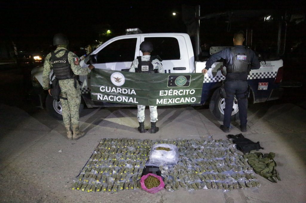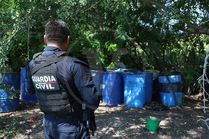 Redacción / La Voz de Michoacán Buenavista, Michoacán. Como resultado de los operativos coordinados entre la Guardia Civil, Ejército Mexicano y Guardia Nacional en la Tenencia de Felipe Carrillo Puerto, conocida como ‘La Ruana’, durante las últimas horas fueron detenidos 4 presuntos integrantes del gripo delictivo denominado ‘Los Viagras’, además se desmanteló un narcolaboratorio y se aseguró diverso armamento, droga, equipo táctico y vehículos. Dentro del despliegue de la Base de Operaciones Interinstitucionales (BOI), primeramente, los uniformados en un camino rural próximo a la "La Ruana", detuvieron a José Luis "N", alias "El Chango"; Luis Alberto "N", apodado "El Chivo"; y Jesús "N", alias "El Chamán", todos ellos relacionados con el objetivo criminal identificado como "La Sirena", uno de los principales generadores de violencia en la región, según los reportes de inteligencia militar. Foto: La Voz de Michoacán. A los indícialos les fueron incautadas tres armas de fuego largas, así como 14 cargadores y 260 cartuchos útiles y diverso equipo táctico. Posteriormente los guardias civiles, soldados y guardias nacionales, en una zona cerril, ubicaron y destruyeron un laboratorio clandestino en el que los criminales usaban tres reactores para la fabricación de drogas sintéticas. Foto: La Voz de Michoacán. En otra movilización en esa misma área fue capturado otro presunto operador del mismo grupo delincuencial, a quien le fue asegurado armamento, equipo táctico, dos motocicletas y 2 vehículos. El detenido se identificó como Carlos Alberto “N” de 25 años de edad, a quien le fue asegurado, un rifle de asalto, 8 cargadores, 193 cartuchos útiles, dos chalecos porta placas, así como una camioneta Nissan Xtrail, una Dodge Ram y una motocicleta, todas las unidades con reporte de robo. Finalmente, y durante patrullajes en la misma localidad de “La Ruana”, personal de la Base de Operaciones Interinstitucionales, localizó 900 dosis de mariguana listas para su comercialización en el mercado negro. Por lo que el enervante con un peso aproximado de 9 kilos, fue incinerado en la zona, y se dio vista a la autoridad correspondiente. En tanto que los detenidos, el armamento y equipo bélico asegurados, fueron puestos a disposición de las Fiscalías respectivas, instancia que habrá de continuar con las investigaciones correspondientes ya que se presume que los sospechosos pudieran estar involucrados en la comisión de otros tantos delitos.