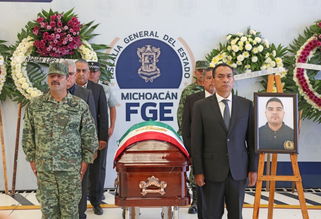 Redacción / La Voz de Michoacán Morelia, Michoacán. Como resultado de trabajos de investigación, personal de la Fiscalía General del Estado de Michoacán (FGE) detuvo a dos hombres, presuntos responsables del homicidio de Christian Yair V., policía de Investigación, y un adolescente, hechos ocurridos el pasado 3 de noviembre, en el municipio de Tarímbaro. El día en cita, elementos de la policía que realizaban tareas de investigación en la localidad de Téjaro, se percataron de un adolescente que se trasladaba en una motocicleta amarilla, y que al verlos, se paró y arrojó una bolsa tipo “bandolera”, para después intentar escapar. Foto: La Voz de Michoacán. Al darle alcance y confirmar que la bolsa contenía una sustancia con características de narcótico, se dispuso el traslado del adolescente a las instalaciones de la institución, en Morelia; sin embargo, al llegar a la localidad de Uruétaro, sobre la calle Valle de Paracho, el personal fue sorprendido por los tripulantes de tres camionetas, quienes los agredieron con disparos por proyectil de arma de fuego. El ataque sucedió en la calle Valle de Paracho, casi esquina con la vialidad Valle de Apatzingán, cerca de la carretera Morelia-Álvaro Obregón. Foto: La Voz de Michoacán. Durante el ataque, la unidad resultó con varios impactos de bala, por lo que los agentes intentaron resguardarse y repeler la agresión. En estos hechos murió el adolescente requerido y el agente investigador, Christian Yair C.; ambos presentaban heridas por disparo de arma de fuego. La unidad de la Fiscalía con impactos de arma de fuego fue asegurada. Al conocer sobre el hecho, personal pericial procesó la escena del crimen, percatándose de que dos armas de cargo de Christian Yair C., habían sido sustraídas, hecho que también fue reportado. En el desarrollo de las investigaciones, la Unidad Especializada de Investigación del Homicidio Doloso y Feminicidio, recabó datos de prueba de la posible participación de Alejandro y/o Alexander “N” y Martín “N”, de quienes solicitó orden de aprehensión que hoy, fue cumplimentada. Ambos detenidos serán presentados ante la autoridad correspondiente que habrá de resolver su situación legal. La FGE rindió un homenaje al elemento de la Policía de Investigación caído en cumplimiento de su deber.