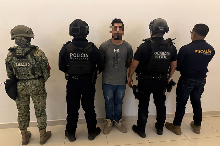 Jacona, Michoacán. Se logró la detención de un sujeto implicado en homicidio calificado y lesiones calificadas, señalado como principal generador de violencia en la demarcación, esto como resultado de un operativo coordinado entre la Secretaría de Seguridad Pública (SSP), Secretaría de la Defensa Nacional (SEDENA), la Fiscalía General del Estado (FGE) y Policía Municipal.