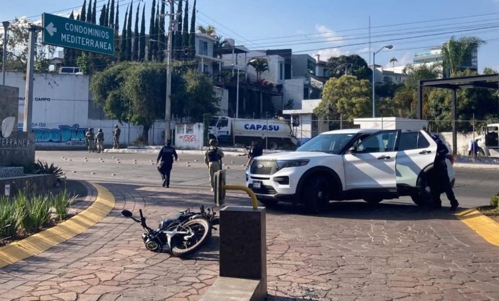 Redacción / La Voz de Michoacán Uruapan, Michoacán. Dos empistolados intentaron robar una camioneta propiedad de un empresario y resultaron heridos al enfrentarse a balazos con sus escoltas, sobre el Viaducto a Jicalan, en el acceso a los condominios Mediterránea de Uruapan. Trascendió que la tarde de este martes el empresario viajaba en una camioneta de modelo reciente y alrededor de las 16:00 horas arribó a dicho Fraccionamiento, donde fue interceptado por dos sujetos que tripulaban una motocicleta, quienes lo amagaron con armas de fuego. Escoltas del empresario de inmediato reaccionaron, desatándose un tiroteo, en que los presuntos criminales resultaron heridos. Al sitio arribaron paramédicos de Protección Civil Municipal y trasladaron a los rateros al Hospital Regional; uno de ellos de 29 años de edad permanecía grave ya que presentaba al menos 7 impactos de bala en el tórax y las extremidades inferiores. En el lugar del enfrentamiento quedaron regados varios casquillos percutidos y un cargador, por lo que fue acordonado y se solicitó la intervención de la Fiscalía Regional de Justicia para efectuar las investigaciones correspondientes. La identidad de los lesionados es desconocida hasta el momento. Foto: La Voz de Michoacán.