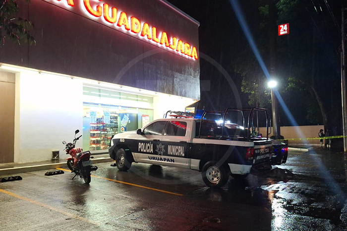 Redacción / La Voz de Michoacán Uruapan, Michoacán. Dos jóvenes empleadas de una Farmacia Guadalajara fueron baleadas durante un violento asalto y una de ellas falleció en un hospital, la noche de este lunes en la colonia San Francisco, al oriente de la ciudad de Uruapan. El atentado ocurrió en la sucursal ubicada sobre la Avenida San Francisco Uruapan. Al sitio se desplazaron decenas de policías y militares quienes desplegaron un operativo en la zona, sin embargo, los delincuentes lograron escapar. En la cobertura noticiosa se pudo conocer que una de las jóvenes fue trasladada a un hospital a bordo de una camioneta particular, pereciendo momentos después, mientras que paramédicos locales auxiliaron a la segunda afectada y la canalizaron a un nosocomio donde permanece internada. De las víctimas no se reveló su identidad. El lugar fue acordonado y se solicitó la intervención del personal de la Fiscalía Regional de Justicia para realizar las investigaciones correspondientes. Foto: La Voz de Michoacán.