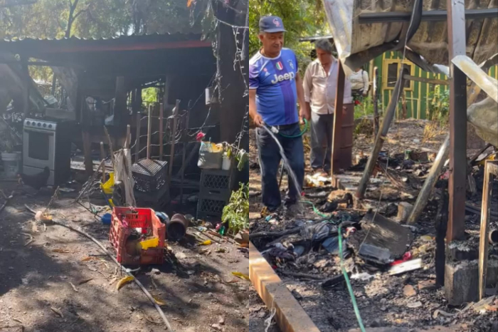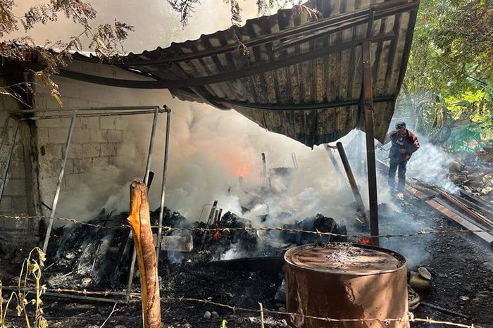 Parácuaro, Mich.- 21 de enero de 2024.- Una familia perdió todo su patrimonio al sufrir el incendio de su vivienda, en la comunidad de El Valle, municipio de Parácuaro. La casa fue reducida a escombros y a pesar de que no se reportan personas heridas, los animalitos que criaban en el lugar murieron atrapados en la quemazón.