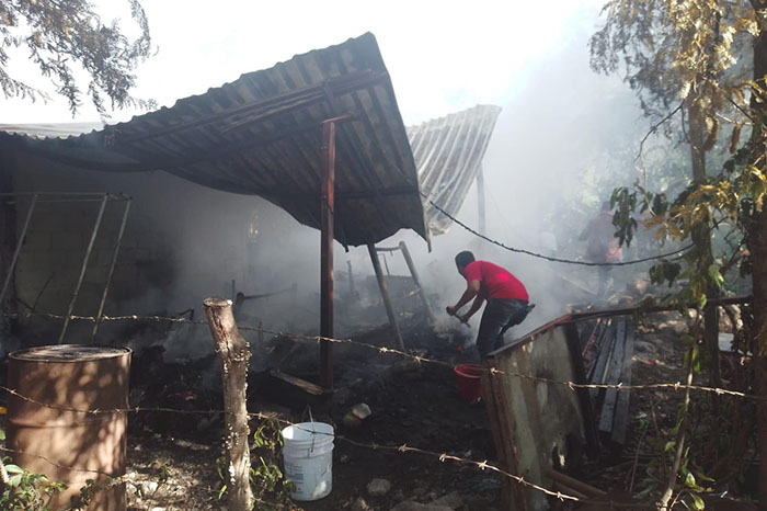 Al paso de los minutos la emergencia fue sofocada, pero consumió en su totalidad el inmueble, donde las llamas alcanzaron también un espacio donde la familia criaba diversos animales entre ellos varias gallinas. Para cuando arribó el personal de Protección Civil, ya todo era escombros.