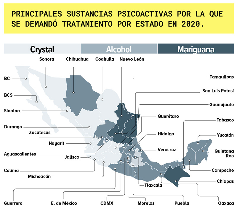 Redacción / La Voz de Michoacán Morelia, Michoacán. La atención médica que se da a personas por consumo de crystal en el país, domina en 12 estados del país, incluso por encima del consumo de alcohol y otras drogas como la mariguana, según el Observatorio Mexicano de Salud Mental y Consumo de Sustanciad Psicoactivas. Con cifras a 2020, el Observatorio aseveró que en Baja California, Baja California Sur, Sonora, Sinaloa, Durango, Coahuila, Colima, Jalisco, Nayarit, Michoacán, Guanajuato y Querétaro el número de personas que han de-mandado algún tipo de tratamiento contra adicciones al crystal supera al alcohol y otras drogas como la mariguana. Según Rubén Saldaña, director general de Hacienda Ojo de Agua, una institución que combate a las adicciones, en la pandemia aumentó el consumo de alcohol y droga entre la población lo más preocupante es que cada vez a más temprana edad se registran los primeros consumos. Aseveró que han encontrado casos de niños de 8 años que ya son adictos al crystal, desafortunadamente por el entorno en el que viven, como por ejemplo la violencia y el abandono. En México, la Comisión Nacional contra las Adicciones estima 20 millones de mexicanos que enfrentan adicción al alcohol y de estos, casi 2 millones enfrentan ya una dependencia. En el país, de 2018 a 2021 se incrementó 35% la atención de personas en los centros de rehabilitación privados hasta alcanzar una cifra de 29 mil, sumados a los otros 30 mil que según la ONU reportó el país, en su último re-porte en materia de drogas. Según datos del Observatorio, mientras en 2013 la demanda de tratamiento por anfetamina será de alrededor de 9% del total de peticiones, para 2020 ya era de 30.5%, mientras que por alcohol bajó de 36.1% a 24.5%, es decir cada vez se internan más personas por consumo de crystal. La pandemia detonó un repunte en las adicciones en los grupos de edad de 13 a 19 años, pues mientras de 2017 a 2018 el consumo repuntó 19.3% en este grupo de edad, durante el confinamiento la cifra trepó a 39.5%, lo que significa el aislamiento o estar en casa no frenó el consumo de droga.