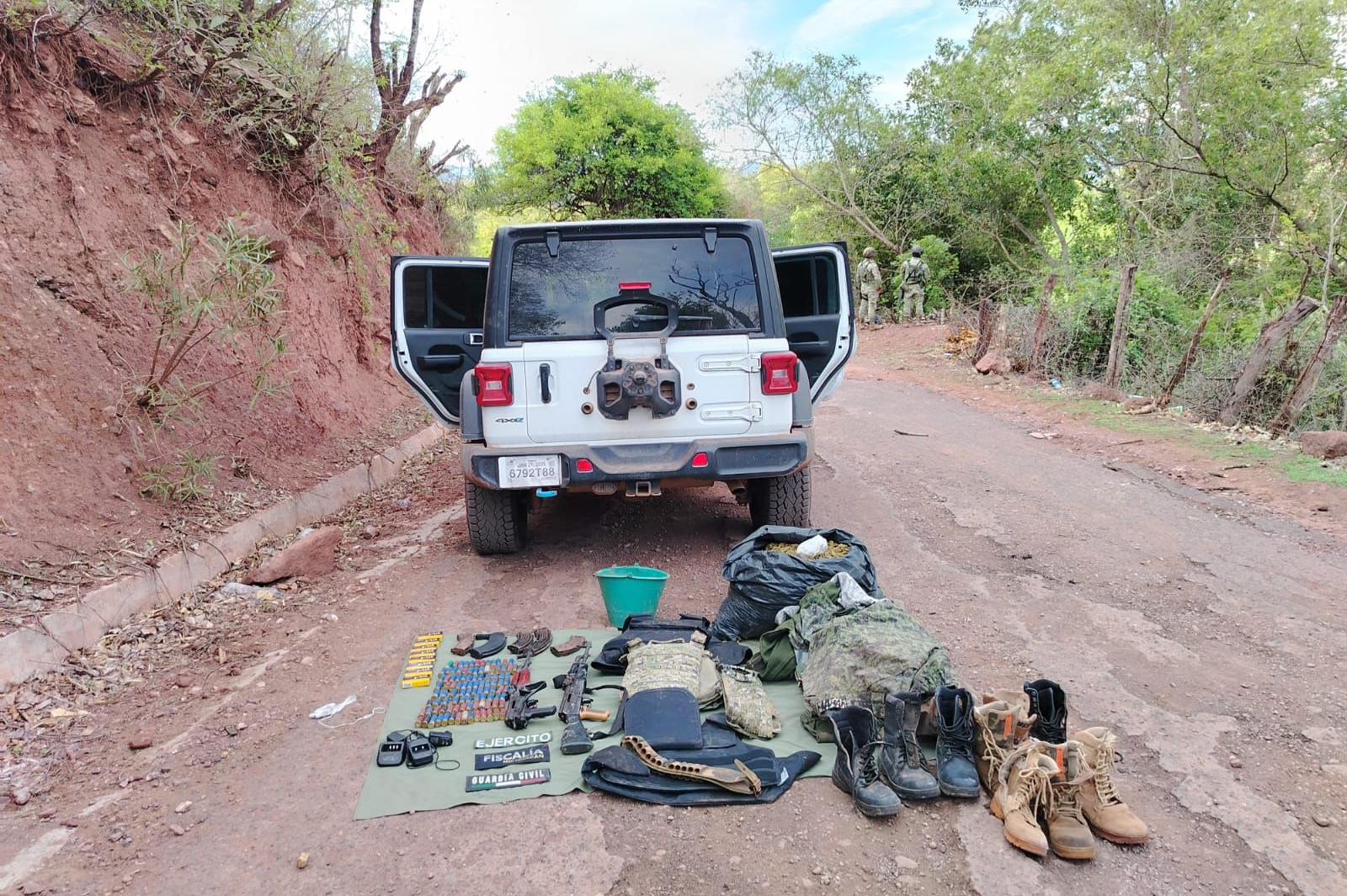 Redacción / La Voz de Michoacán Morelia, Michoacán. En una acción interinstitucional realizada en el marco de las labores de prevención y disuasión del delito, la Fiscalía General del Estado de Michoacán (FGE), Secretaría de la Defensa Nacional (DEFENSA) y Guardia Civil (GC), aseguraron en Tuzantla un vehículo que contenía en su interior droga, equipo táctico, armas y diversos objetos utilizados para la comisión de delitos. Luego de realizar recorridos de vigilancia en la región Oriente, las instituciones integrantes de la Base de Operaciones Interinstitucionales (BOI), que se encuentra establecida en Tuzantla, localizó en un camino de terracería ubicado en la localidad de Arroyo Seco, un vehículo de la marca Jeep, color blanco, el cual fue inspeccionado. En la unidad fueron localizadas dos armas largas, tipo AK-47; 5 cargadores balísticos; una bolsa con material verde con las características de la marihuana; cuatro pares de botas tácticas; tres chalecos balísticos; 544 cartuchos útiles; seis pantalones y ocho playeras. El vehículo, la droga y los objetos fueron asegurados y puestos a disposición del agente del Ministerio Público de la Fiscalía General de la República (FGR). La FGE reafirma su compromiso de trabajar de manera coordinada con las diversas instancias para hacerle frente a la delincuencia en la entidad.