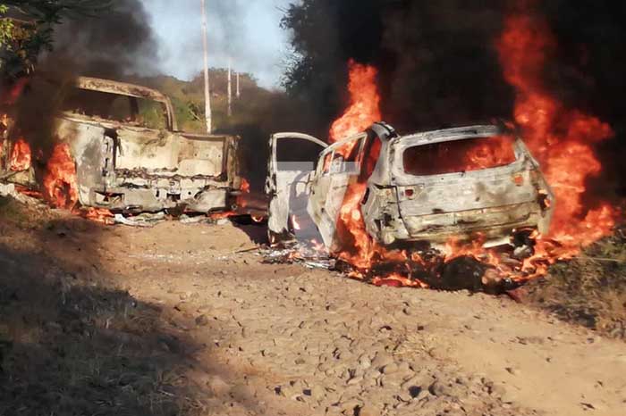 Redacción / La Voz de Michoacán Zamora, Michoacán. La mañana de este viernes se registró un fuerte enfrentamiento a balazos entre integrantes de grupos delictivos rivales en esta demarcación de Zamora, el cual dejó como saldo dos presuntos pistoleros muertos, así como cuatro camionetas aseguradas entre ellas dos totalmente calcinadas. Por información recabada en el lugar de los hechos, se pudo establecer que al filo de las 06:00 horas, vecinos de la comunidad de Atacheo reportaron al 9-1-1 que sobre el camino de terracería que conduce a las comunidades de Moreno de Valencia y Moreno de Bravo, se escuchaban fuertes detonaciones de arma de fuego. De inmediato elementos de la Policía Municipal, Policía Michoacán, así como del Ejército Mexicano y de la Guardia Nacional se movilizaron al lugar y sobre el citado lugar localizaron cuatro camionetas, dos de ellas envueltas en llamas y junto un cadáver del sexo masculino. https://twitter.com/MICHOACANSSP/status/1324735416331849730?s=20 Así mismo dentro de otra unidad se encontró a otro sujeto sin vida y sobre el camino cientos de casquillos percutidos de diversos calibres, por lo que delimitaron la zona, y dieron aviso a las autoridades de la Fiscalía General del Estado. De igual forma al sitio de la balacera llegaron los bomberos de Rescate y de Protección Civil Municipal quienes se encargaron de apagar las unidades incendiadas. Las unidades aseguradas son, una camioneta Jeep, tipo Wrangler, modelo 2020, color negro, sin placas, así como una Nissan pick up, color azul marino, sin placas, ambas con reporte de robo, mientras las unidades calcinadas son, una tipo Suv y otra pick up, desconociéndose más características de estas últimas. Mas tarde al área arribó el personal de la Unidad de Servicios Periciales y Escena del Crimen, el cual se encargó de la recolección de indicios y del levantamiento de los cuerpos, los cuales fueron enviados a la morgue local, donde permanecen en calidad de no identificados. Cabe señalar que en la última semana han incrementado los hechos violentos en la zona de las comunidades de Atacheo, Santiaguillo, entre otras indicando fuentes gubernamentales que se debe precisamente a la disputa entre grupos delincuenciales antagónicos que buscan hacerse del control de la zona. Por su parte la Secretaría de Seguridad Pública a través de su cuenta oficial de Twitter informó que “La #PolicíaMichoacán junto a @SEDENAmx, @GN_MEXICO_, y @FiscaliaMich, continúa con tareas operativas en las inmediaciones de la localidad Atacheo de Regalado, municipio de Zamora donde se registró un enfrentamiento entre civiles, localizándose 3 vehículos y 2 personas fallecidas”. La dependencia añadió que “ En la localidad, así como en municipios colindantes, los agentes mantienen un dispositivo de seguridad como parte del reforzamiento de las labores para garantizar la integridad de la población”.