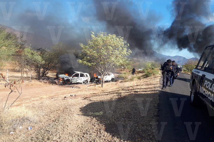 Redacción / La Voz de Michoacán Churumuco, Michoacán. Integrantes de células delictivas rivales protagonizaron un enfrentamiento en esta población de Churumuco, lo cual dejó al menos dos presuntos criminales muertos, así como un oficial municipal sin vida, según los datos obtenidos por este medio. https://twitter.com/PilloTime/status/1216100323518926849 Voces oficiales dijeron a este medio que la refriega se dio por un intento de pistoleros de Zicuirán para ingresar a esta localidad en donde se encontraron con un grupo rival. La situación generó una fuerte movilización policiaca y en los hechos hubo un agente municipal fallecido al encarar a los maleantes. Los presuntos criminales fallecidos están sin identificar y del policía tampoco los contactos allegados al tema revelaron su identidad. Los enfrentamientos a balazos entre los sujetos armados se dieron en diferentes puntos de esta población y hubo vehículos incendiados de los que ellos mismos usaban. En la movilización de los representantes de la ley participó la Policía Michoacán, la Guardia Nacional y el personal al de la Fiscalía General del Estado. Ante el escenario la Secretaría de Seguridad Pública divulgó en su cuenta de Twitter (@MichoacanSSP): “Reforzamos acciones operativas, en conjunto con la @GN_MEXICO_ y @FiscaliaMich, en Churumuco para garantizar la seguridad de la población, ante reporte de que personas armadas de Zicuirán intentaron ingresar al municipio. No se bajará la guardia en el objetivo de brindar seguridad a las y los michoacanos”. Se tuvo conocimiento de que en los hechos algunos vehículos también fueron dañados por los delincuentes.