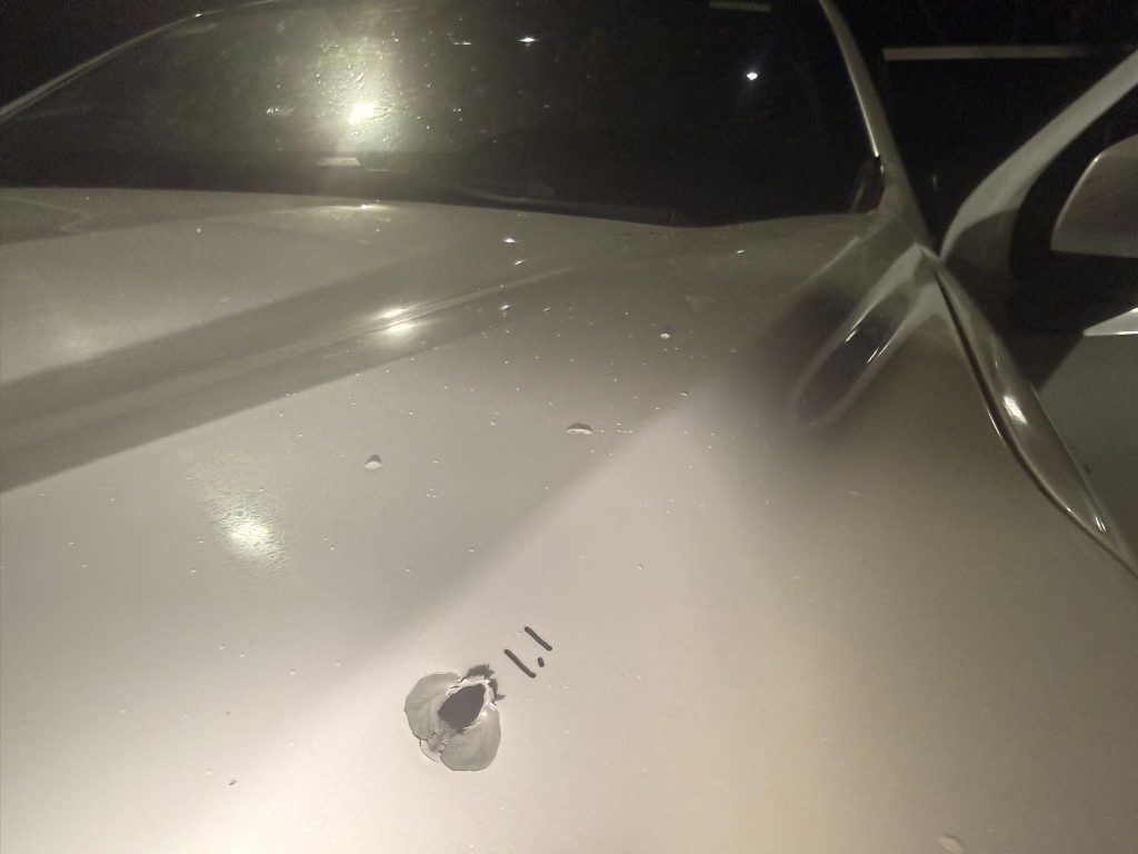 En la imagen se observa el cofre de ésta con un impacto de arma de alto poder, señalando que este domingo “informaremos todo lo que pasó”.