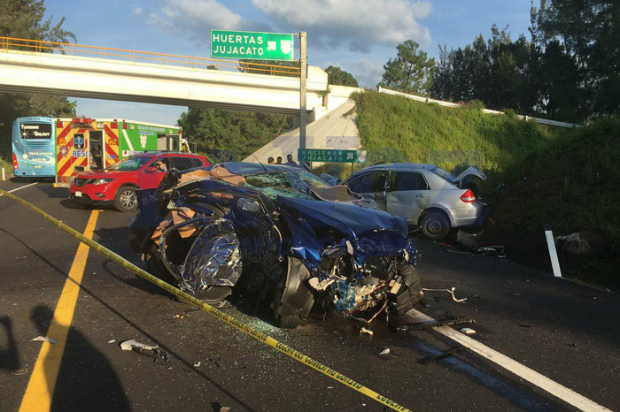 Alejandro Serrano/ La Voz de Michoacán Salvador Escalante, Michoacán. Un encontronazo entre dos automóviles dejó un fallecido y cuatro más lesionados. El hecho se dio la tarde de este domingo sobre el kilómetro 80 de la referida rúa, en la región de Salvador Escalante. Automovilistas que circulaban en la zona vieron el accidente y de inmediato pidieron ayuda de ambulancias. Paramédicos acudieron al área y confirmaron el deceso de uno de los ocupantes de los carros implicados, además auxiliaron a los sobrevivientes, mismos que fueron trasladados de emergencia hasta un hospital. Las identidades del fallecido y de los lesionados hasta el momento son ignoradas. Los vehículos que participaron en el choque frontal terminaron destrozados, uno de ellos es de color blanco y el otro azul marino.