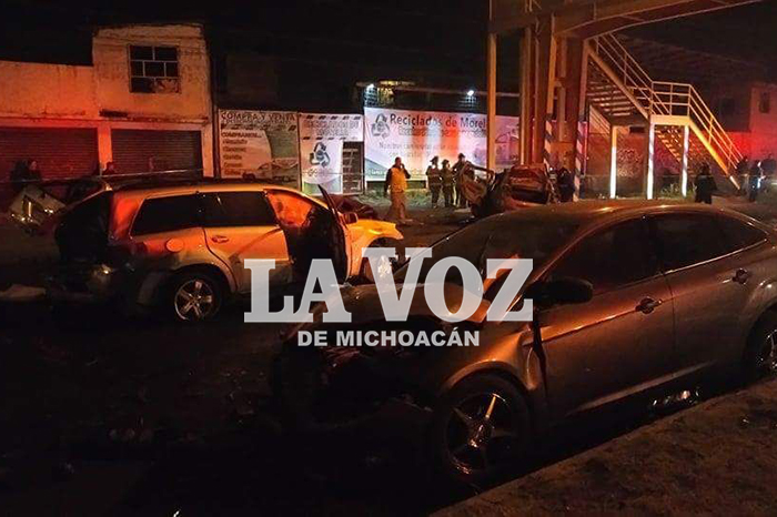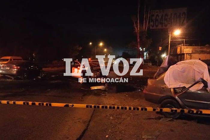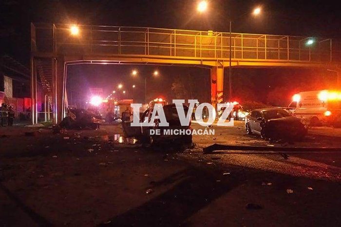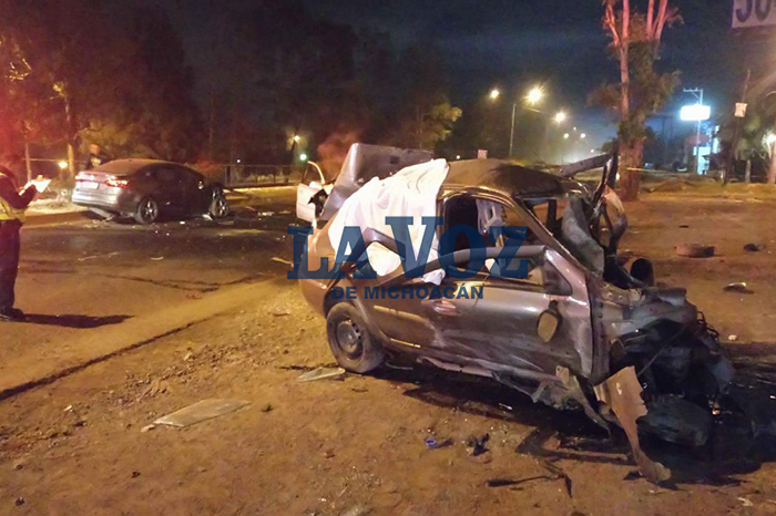 Alejandro Serrano/ La Voz de Michoacán Morelia, Michoacán. Esta noche se dio un fuerte accidente donde un hombre, una joven y un niño murieron. La carambola se dio sobre la Avenida Madero Oriente (salida a Charo), comentaron las autoridades, además hubo dos lesionados. El incidente ocurrió en el sentido hacia Ciudad industrial, a la altura de la colonia Ejidal Isaac Arriaga. Las víctimas viajaban a bordo de un Nissan Sentra, color gris, matrícula PSJ6085, el cual terminó destrozado. Los otros carros involucrados son una camioneta Mercedes Benz, color gris, placa PFZ912D; así como un Ford Focus gris oscuro, lámina 608YTL, ambos también muy dañados. Paramédicos de Cruz Roja y del Centro Regulador de Urgencias Médicas (CRUM) atendieron a los lesionados y a uno de ellos lo canalizaron al Hospital Civil. Bomberos municipales apoyaron en las labores de auxilio y sofocaron el fuego de la furgoneta, pues ésta comenzó a incendiarse tras la colisión. Los patrulleros de la Policía Michoacán de Tránsito acordonaron la escena. La Procuraduría General de Justicia (PGJ) le encomendó a sus peritos y agentes emprender las correspondientes investigaciones del suceso.
