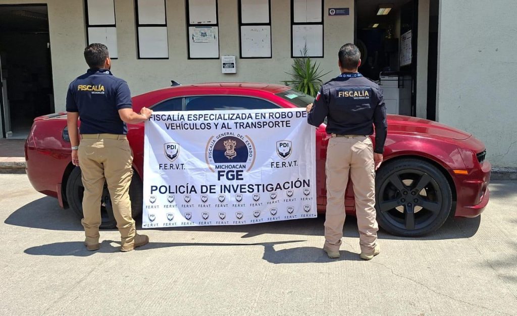 Redacción / La Voz de Michoacán Tarímbaro, Michoacán. La Fiscalía General del Estado de Michoacán, a través de la Fiscalía Especializada en Robo de Vehículos y al Transporte, llevó a cabo el aseguramiento de dos unidades durante acciones operativas realizadas en el municipio de Tarímbaro. En una primera intervención, agentes de la Policía de Investigación (PDI) aseguraron un vehículo de la marca Chevrolet, línea Camaro, color rojo cereza, el cual fue localizado sobre la calle Francisco Javier Mina Oriente, en el Barrio de la Cruz. La unidad fue puesta a disposición del agente del Ministerio Público, al detectarse que contaba con placas sobrepuestas. En otra acción, los agentes aseguraron un vehículo tipo torton, marca Kenworth, ubicado en la calle Benito Juárez, también en el Barrio de la Cruz. De acuerdo con las primeras indagatorias, la unidad era utilizada para el transporte de autopartes con reporte de robo. Ambos vehículos fueron puestos a disposición de la autoridad correspondiente, a efecto de continuar con las investigaciones que permitan esclarecer los hechos. La FGE reitera su compromiso con la seguridad y el combate a los delitos que afectan a la ciudadanía, manteniendo operativos constantes para garantizar el cumplimiento de la ley en Michoacán.