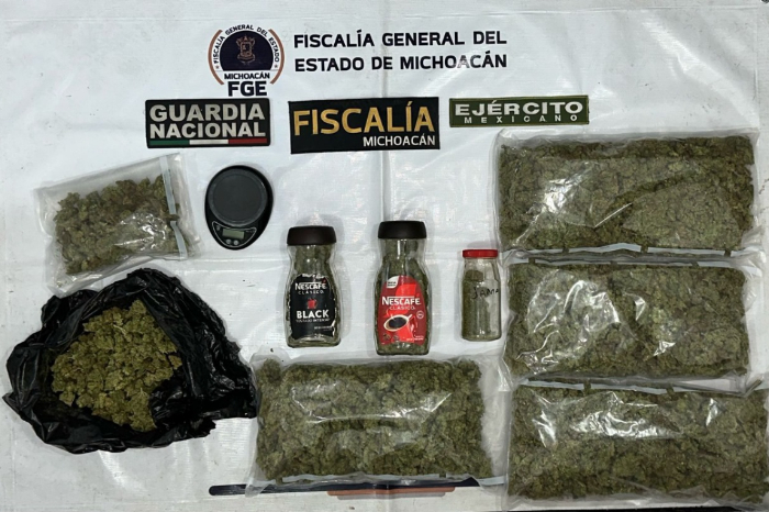 Morelia, Michoacán. - Como parte de una investigación derivada de una denuncia, la Fiscalía General del Estado de Michoacán (FGE), a través de la Unidad de Investigación y Persecución al Narcomenudeo (UIPN), llevó a cabo un cateo en un inmueble ubicado en la colonia Industrial, donde fue asegurada una sustancia con características propias de la marihuana y se detuvo a dos personas. La diligencia se realizó en cumplimiento a una orden de cateo emitida por un Juez de Control, en un domicilio situado en la calle Prolongación de Zinc, en la citada colonia. En el lugar, fueron asegurados tres frascos de vidrio y seis bolsas que contenían vegetal verde y seco, con características similares a la marihuana. Durante el operativo, agentes de la Fiscalía Especializada para la Atención de Delitos de Alto Impacto detuvieron a Valentina “N” y Víctor Jared “N”, de 20 y 24 años de edad, respectivamente. El narcótico fue asegurado como parte de las evidencias, mientras que las personas detenidas fueron trasladadas a las instalaciones de la Fiscalía Especializada y puestas a disposición del Ministerio Público, donde se continuará con las investigaciones para determinar su situación jurídica. La FGE reitera su compromiso de investigar y perseguir los delitos que atenten contra la integridad de las y los michoacanos.