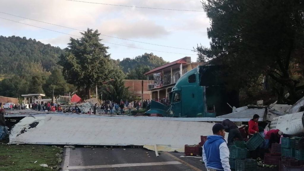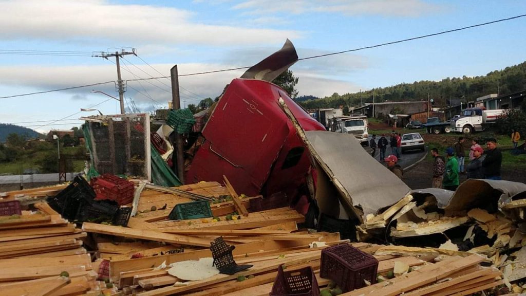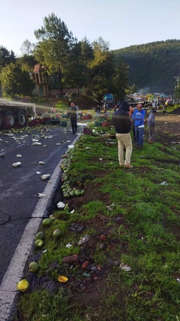 Redacción / La Voz de Michoacán Uruapan.- Michoacán.- La mañana de este viernes, se registró un aparatoso accidente vehicular, en esta comunidad indígena de Capacuaro, donde se impactaron dos camiones tipo tráiler; uno, cargado con madera aserrada y otro, con cientos de caja de mango. La vialidad quedó interrumpida durante varias horas. Vecinos del lugar, señalaron que poco después de las 08:00 horas, se escuchó un fuerte ruido; eran los dos camiones tipo tráiler que habían chocado, a la altura de la curva que se ubica sobre la salida a Paracho, y la desviación a la comunidad de Quinceo. Al parecer, en dirección al centro de Capacuaro, circulaba un camión, color azul, cargado con tablas de madera aserrada, que se impactó contra otro camión, color rojo, que circulaba con dirección a Paracho, cargado de cajas de mango. Las dos unidades, quedaron prácticamente destrozadas; las cajas de mango, esparcidas en una extensa área. Personal de la ambulancia de la comunidad, atendió a los dos conductores, que sufrieron golpes leves, que no ameritaron hospitalización. Al lugar, arribaron elementos de la Guardia Nacional; algunas grúas, realizaron maniobras para retirar los camiones que prácticamente quedaron convertidos en chatarra.