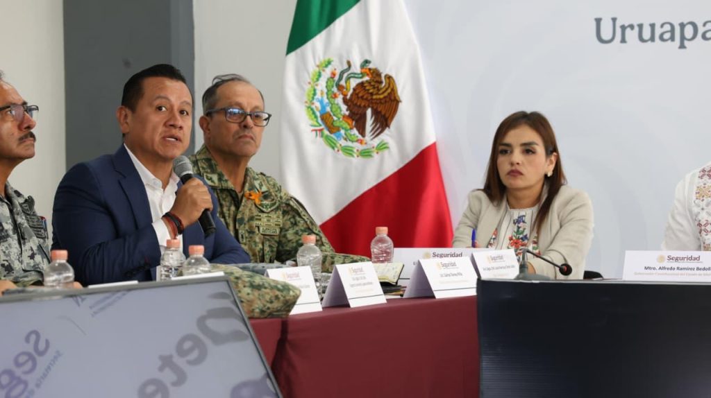 Redacción / La Voz de Michoacán Uruapan, Michoacán. Por instrucciones de la presidenta Claudia Sheinbaum, y con el objetivo de fortalecer las acciones a favor de la población, los titulares del Gabinete de Seguridad sostuvieron una reunión de trabajo en Uruapan con presidentes municipales, diputadas y diputados locales, así como con autoridades de los tres órdenes de gobierno, con el objetivo de fortalecer las acciones coordinadas y construir soluciones conjuntas en materia de seguridad. El encuentro contó con la participación del secretario de Seguridad y Protección Ciudadana, Omar García Harfuch; el general Ricardo Trevilla Trejo, secretario de la Defensa Nacional; el general Hernán Cortés Hernández, comandante de la Guardia Nacional; el gobernador Alfredo Ramírez Bedolla; el Fiscal Estatal, Carlos Torres Piña; la alcaldesa Grecia Quiroz, así como autoridades estatales, municipales, legisladores y representantes de corporaciones de seguridad federal y local. Durante la sesión de trabajo se revisaron avances de la estrategia en la región, se escucharon las solicitudes y prioridades de las autoridades locales y se acordó reforzar los esfuerzos conjuntos para combatir la extorsión, atender las zonas de mayor incidencia delictiva y garantizar la seguridad de la población. Se destacó que la presencia operativa de la Secretaría de la Defensa Nacional (Defensa), la Secretaría de Marina (Semar), la Guardia Nacional (GN) y la Secretaría de Seguridad y Protección Ciudadana (SSPC) se mantendrá de manera permanente para proteger los ciclos productivos, fortalecer la vigilancia territorial y realizar acciones contundentes contra los grupos delictivos que afectan a las familias y al sector económico de la región. Las autoridades federales reiteraron que, por instrucción de la Presidenta de México, el Gabinete de Seguridad continuará visitando municipios de Michoacán para supervisar despliegues, evaluar resultados y atender directamente las necesidades de las comunidades y de los gobiernos locales. Foto: Cortesía Resultado del “Plan Michoacán por la Paz y la Justicia” del 10 de noviembre al 1 de diciembre de 2025, han sido detenidas 147 personas, se aseguraron 60 armas de fuego, 6,954 cartuchos, 365 cargadores, 121 vehículos, 89 artefactos explosivos, 53 kilos de material explosivo, 18.7 kilos de marihuana, 426 kilos de metanfetamina, 28,800 litros y 7,300 kilos de sustancias químicas para la elaboración de droga sintética, además se han inhabilitado nueve campamentos clandestinos utilizados por grupos de la delincuencia organizada. El Gobierno de México trabaja de manera coordinada con el Gobierno de Michoacán, autoridades municipales, legisladores y empresarios para la construcción de la paz y el fortalecimiento de la seguridad en el estado.