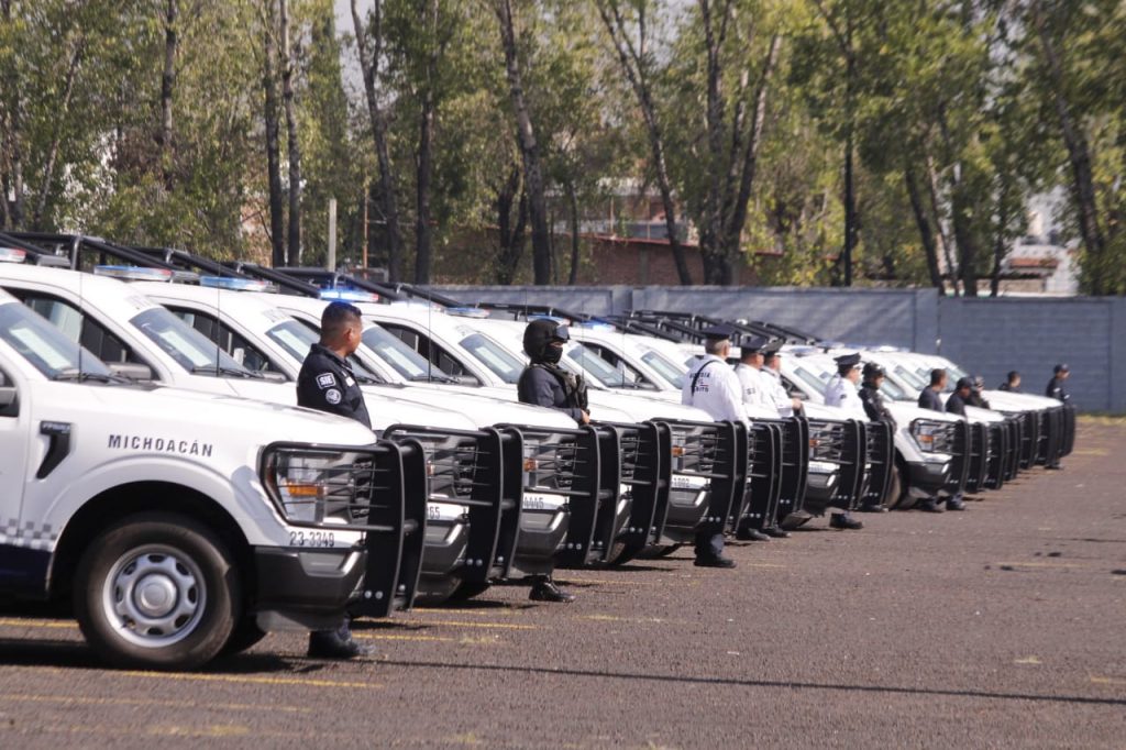 Morelia, Michoacán.- Con la entrega de 116 patrullas y un camión de transporte de personal, el gobernador Alfredo Ramírez, refrendó su compromiso con el fortalecimiento de la seguridad del estado, al invertir 158.24 millones de pesos en dicho equipamiento, que permitirá un mejor desempeño de los agentes policiales. Ramírez Bedolla puntualizó que “nuestro objetivo con esta entrega es claro: fortalecer la capacidad operativa de nuestra Guaria Civil, coadyuvar en la reducción de los índices delictivos y brindar una respuesta rápida y oportuna ante las emergencias”. El mandatario detalló que, a dos años de gobierno, se muestra con resultados el avance en seguridad, ya que durante los últimos 18 meses existe un 30 por ciento de tendencia a la baja en el delito de homicidio, ya que el último año se registraron 600 casos menos, y se logró disminuir los homicidios dolosos contra las mujeres en un 38 por ciento. Foto: Samuel Herrera Jr. En tanto, el secretario de Seguridad Pública, José Alfredo Ortega Reyes, agradeció al gobernador el apoyo para la dignificación de la Guardia Civil con la entrega de los vehículos y equipamiento a los agentes, y exhortó al personal a utilizar los recursos con eficacia para dar continuidad al esquema de seguridad para la reducción de la incidencia delictiva. “Todos los días vemos a guardias civiles trabajando por la seguridad de nuestro estado, los vemos en las calles cuidando a las familias y ayudando a combatir y a prevenir los delitos”. De igual forma, el titular del Secretariado Ejecutivo del Sistema Estatal de Seguridad Pública (SESESP), César Erwin Sánchez Coria, manifestó que la entrega de estas unidades permitirá el fortalecimiento de los cuerpos de seguridad, al ser una gran herramienta para el desarrollo de las funciones policiales. Foto: Samuel Herrera Jr. Estuvieron presentes en el evento el secretario de Gobierno, Elías Ibarra Torres; el secretario de Finanzas, Luis Navarro García; el comandante del Doceavo Batallón de Infantería, Elvin Rolando Ramos Santos; el director general de la Policía Auxiliar, Juan Eulogio Sandoval Vargas; y el subsecretario de Operación Policial, José Ortega Silva.