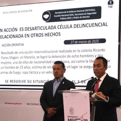 Redacción / La Voz de Michoacán Morelia, Michoacán. La Fiscalía General del Estado informó que la célula criminal detenida el pasado 27 de marzo en la colonia Ricardo Flores Magón, en Morelia, está relacionada con al menos 10 homicidios, por lo que las investigaciones continúan. "Hoy se están integrando las carpetas con mayor información para poder judicializarlas", señaló, destacando que el caso sigue en proceso y que se busca esclarecer todos los hechos relacionados con la operación de este grupo criminal. Cabe recodar que el jueves 27 de marzo, los agentes de la FGE, apoyados por personal del Ejército Mexicano, Guardia Nacional, Guardia Civil y Policía Municipal, realizaban investigaciones relacionadas con un homicidio registrado en la capital michoacana cuando, en determinado momento, detectaron un vehículo Kia ocupado por varios sospechosos, quienes al ver a los agentes entraron a un domicilio del citado asentamiento y comenzaron a disparar armas de fuego contra los uniformados. Los oficiales repelieron el ataque y aseguraron a los agresores, a quienes les decomisaron cinco fusiles, equipo táctico con logos del Cartel Jalisco Nueva Generación (CJNG) y el mencionado automotor. Asimismo, en el inmueble fue liberado un muchacho de 23 años de edad, quien había estado privado de su libertad y sus captores le amputaron un dedo, por lo que la víctima recibió los primeros auxilios y fue canalizada a un hospital para su adecuada atención médica. Los ahora indiciados son: Luis Alfredo, Santiago, Jesús Alejandro, Alfonso, Juan Carlos, Andrés Lenin, Francisco, Juan Pablo, Karolina Monserrat y Karen Angélica, esta última originaria de Colombia, por lo que ya se notificó a las autoridades consulares. Según la FGE, esta investigación es clave para determinar la red de operaciones del grupo y su posible conexión con otras actividades delictivas en la región. Además, López Solís indicó que la mayoría de los detenidos provienen de otras entidades de la República, lo que sugiere que fueron enviados para enfrentar a grupos criminales rivales. "En tanto, hoy están retirados de la actividad criminal y a disposición de un juez penal competente", concluyó el fiscal.