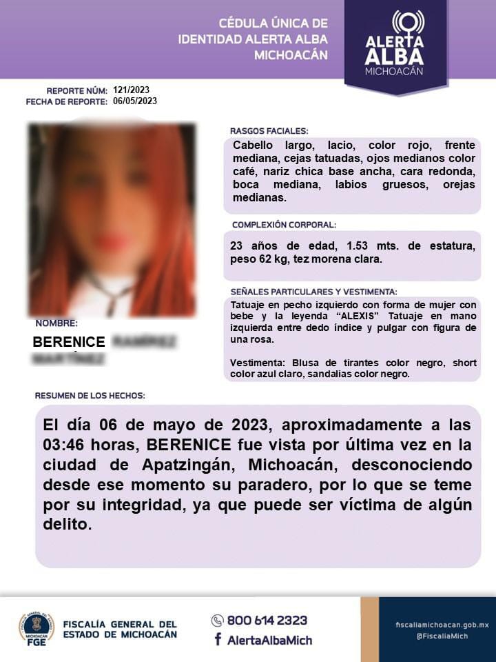 Por lo anterior se movilizaron los uniformados, los cuales se percataron que la unidad coincidía con el auto, en que viajaba Berenice M., de 23 años de edad, joven que estaba desaparecida desde el pasado 06 de mayo y al revisar dentro del coche, localizaron el cadáver de la susodicha.