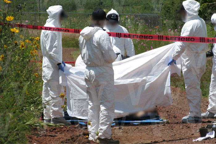 Salvador Rodríguez/La Voz de Michoacán Morelia, Michoacán. Envuelto en un colchón de plástico azul (inflable) y amarrado con cinta adhesiva transparente, además de un lazo, así estaba un hombre muerto sobre una brecha de terracería que conecta de la carretera Morelia-Cuto de La Esperanza al depósito de residuos sólidos de una empresa papelera. El finado no ha sido identificado y a pesar de la manera en que fue descubierto no se le apreciaban lesiones de arma punzocortante, golpes o impactos de balas, comentaron fuentes policiales en el área del hallazgo. Trascendió que algunos habitantes de la zona fueron quienes encontraron el cadáver durante la mañana de este miércoles, entonces avisaron al número de emergencias. Después llegaron los patrulleros municipales y tras corroborar la situación acordonaron el perímetro. Sólo se conoció que el extinto era de tez morena, complexión media, cabello negro, tenía entre 30 y 35 años de edad; vestía una camiseta de tirantes color negro. El paraje donde fue localizado está en las inmediaciones del sitio denominado El Potrero, cerca de las instalaciones de “Plus Gas” y “Ultra Gas”. Los integrantes de la Unidad Especializada en la Escena del Crimen (UEEC) arribaron al citado lugar, comenzaron a buscar pistas y abrieron la respectiva Carpeta de Investigación, consecutivamente trasladaron el occiso a la morgue, donde un doctor legista le aplicó la necropsia de ley a efecto de determinar las causas de la defunción.
