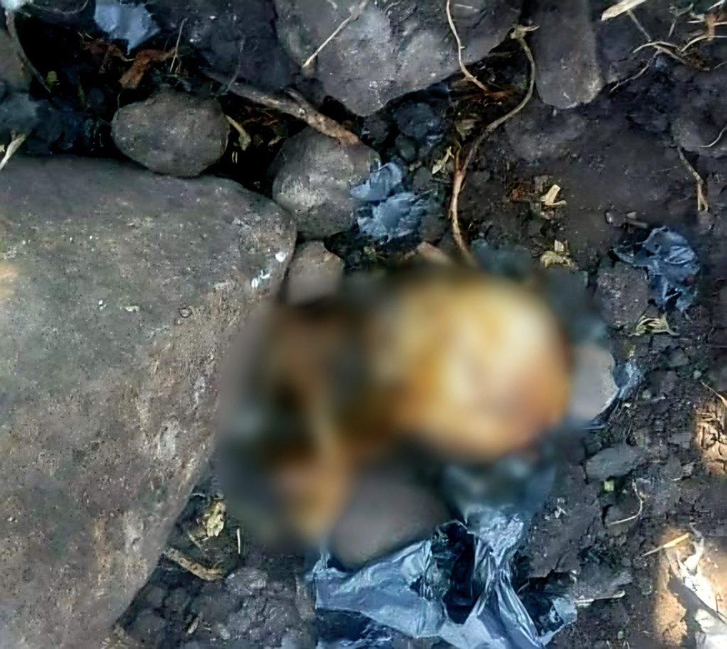 El cadáver, al parecer del sexo masculino, estaba parcialmente enterrado y con una piedra de gran tamaño encima.