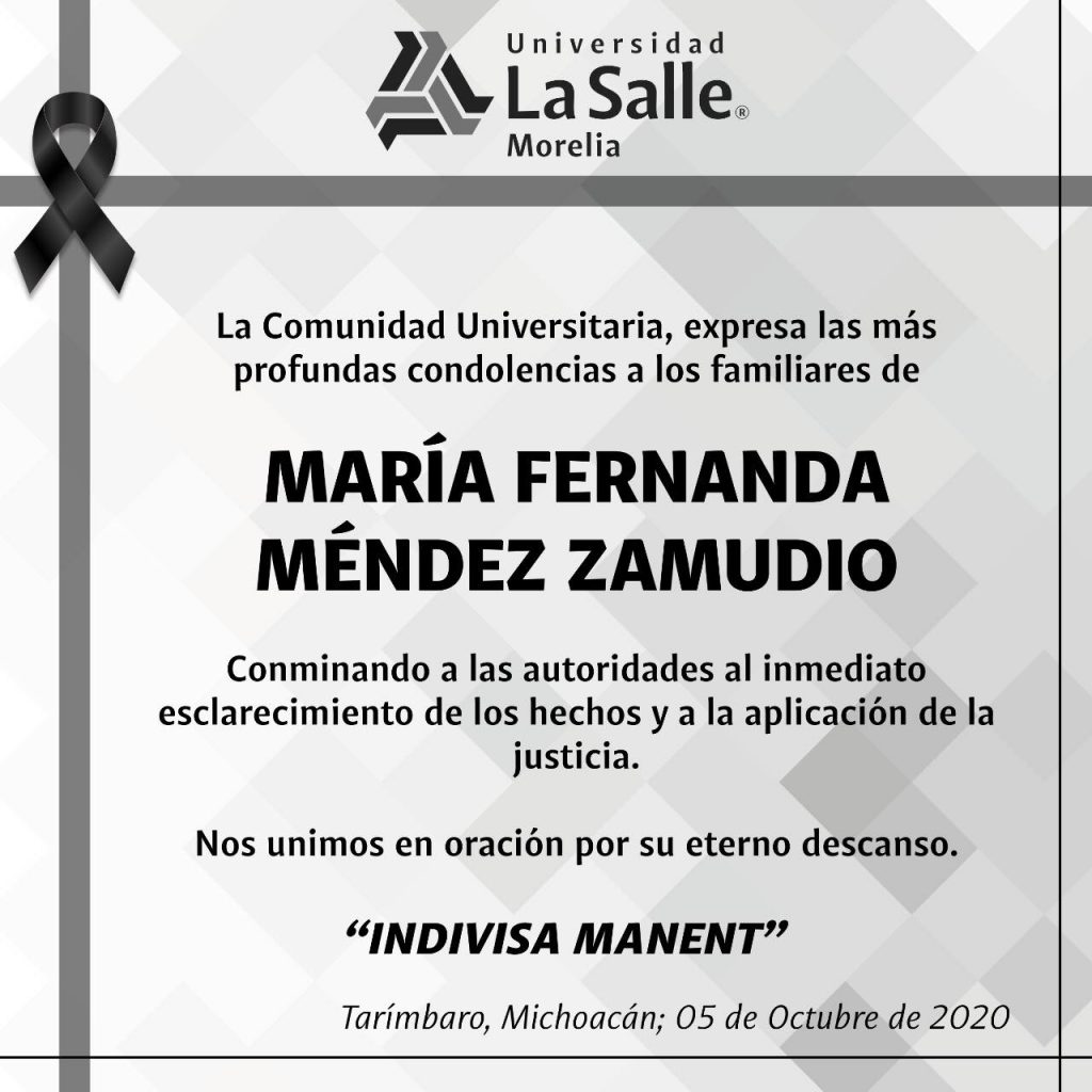 Salvador Rodríguez / La Voz de Michoacán Morelia, Michoacán. La joven que fue localizada muerta debajo de un puente vehicular en el distribuidor vial de Morelia, fue identificada como María, y era estudiante de la Universidad La Salle de Morelia y cursaba la carrera de Diseño Gráfico en el tercer semestre. A decir de familiares la joven había salido a una fiesta el domingo pasado y ya no regresó a su casa y fue hasta el lunes que personal de la fiscalía avisó a sus familiares que estaba muerta. A través de las redes sociales, la Universidad La Salle expresó sus condolencias a los familiares y conminó a las autoridades al inmediato esclarecimiento de los hechos y la aplicación de la justicia. Como se recordará, la joven fue encontrada muerta sobre el asfalto de la referida vialidad, en el sentido del Estadio Morelos hacia el Mercado de Abastos, justo debajo de un puente vehicular, ubicado frente a la avenida Mil Cumbres, a la altura de las colonias Lomas del Tecnológico y Barrio Alto. El cuerpo de la joven estaba prácticamente destrozado, pues varios automotores le pasaron por encima. Al enterarse, los oficiales de la Policía Michoacán de Tránsito y Movilidad, de la División de Peritos, llegaron a la escena, la acordonaron y solicitaron la intervención de la Fiscalía General del Estado (FGE). Familia pide que no se descarten líneas de investigación En entrevista con un medio de comunicación local, la madre de María Fernanda pidió que no se descarte ninguna línea de investigación en la muerte de su hija, pues dijo, antes de se encontrada sin vida había discutido con su exnovio. La mujer relató que su hija salió con su exnovio la madrugada del lunes, sin que su familia se diera cuenta, y él llevó a la joven al puente de la salida a Salamanca, en donde discutieron. “Ella tuvo una discusión con su exnovio, ya no era su novio, hay testigos que vieron que ellos andaban discutiendo. El muchacho dice que mi hija salió del coche y corrió. Él me fue a hablar para irla a buscar, ya cuando yo llegué al puente los policías no nos dejaron acercarnos ni nada. Ya ahorita identifiqué al cuerpo y sí es mi hija desafortunadamente”, señaló la madre en entrevista con un medio local. La madre de María Fernanda pidió que no se descarte ninguna línea de investigación en la muerte de su hija, pues indicó, podría tratarse de un feminicidio. “Lo que quiero es que se investigue bien para saber qué fue lo que pasó y si se tienen que ver los videos pues que se vean. Eso es todo lo que quiero que sepan”, declaró. La mujer relató que el exnovio llegó a su casa con la bolsa y el celular de su hija, y le dijo que fueran a buscarla y la llevó al puente, donde la había visto por última vez. “Él me dijo que fuéramos a buscarla, me llamó a las 7 de la mañana y me dijo que fuéramos a buscarla, porque había tenido una discusión con ella y ella había salido corriendo. Y me llevo ahí al puente en donde fue que él la llevo”, añadió.