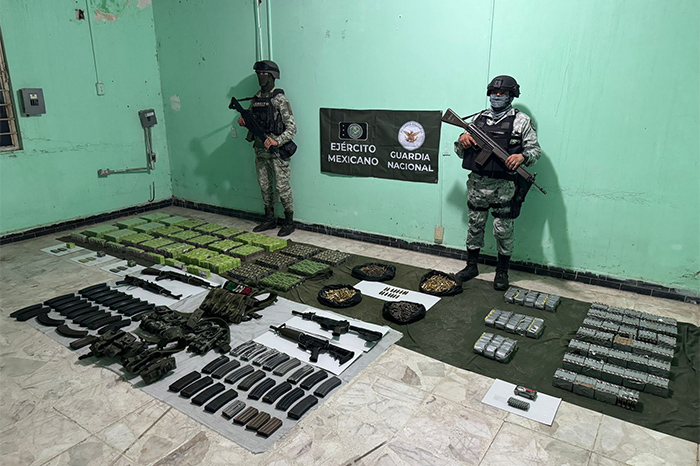 Redacción / La Voz de Michoacán Buenavista, Michoacán. En un operativo reciente, el personal del Ejército y los elementos de la Guardia Nacional aseguraron un importante arsenal del Cártel Jalisco Nueva Generación (CJNG) en el municipio de Buenavista, en un golpe significativo contra la delincuencia organizada en la región, dijeron mandos castrenses. La acción operativa se hizo en la población de División del Norte, dentro de las tareas permanentes contra el crimen, ordenadas por el gobierno de la República. Armamento asegurado: • 2 fusiles tipo AK47. • 2 fusiles tipo R-15. • 47 cargadores para armas de fuego de grueso calibre. • 20 mil 665 cartuchos de grueso calibre. • 1 chaleco contenedor de placas antibala color verde camuflaje, sin placas, con un parche con leyenda CJNG. • 2 fornituras con diversas cartucheras color verde camuflaje. Este operativo demuestra el compromiso de las autoridades para combatir la delincuencia y garantizar la seguridad de la población, subrayaron los encargados del dispositivo, mismos que agregaron que se continuará con las investigaciones para determinar la procedencia y el destino del arsenal incautado.