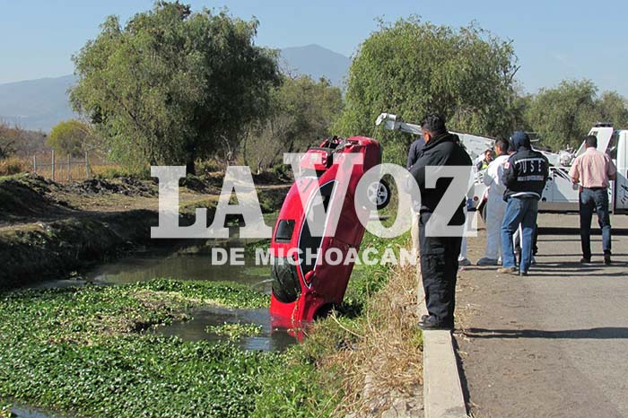 Redacción web / La Voz de Michoacán Morelia, Michoacán. Sin vida fue encontrado un hombre dentro de un automóvil que cayó a un canal de aguas negras, ubicado junto a la Avenida Benito Juárez, a pocos metros de la entrada al fraccionamiento Hacienda Tiníjaro. El automotor siniestrado es de la marca Volkswagen, tipo Bora, color rojo, el cual fue descubierto por algunos peatones durante la mañana de este domingo y lo reportaron al número de emergencias 911. Los oficiales de la Policía Michoacán de Tránsito acudieron al lugar y al intentar sacar el carro con el apoyo de una grúa localizaron a un ciudadano inerte en el interior. Los patrulleros pidieron una ambulancia, luego arribaron los paramédicos del Centro Regulador de Urgencias Médicas (CRUM) y Bomberos Morelia, quienes confirmaron el deceso del conductor. El área fue acordonada y se presentaron los elementos de la Unidad de Atención Temprana, dependientes de la Procuraduría General de Justicia (PGJ), quienes iniciaron las correspondientes investigaciones, además los integrantes de servicios periciales hicieron lo conducente.