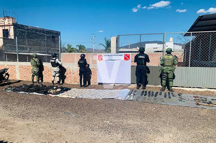 Redacción / La Voz de Michoacán Zamora, Michoacán. Este domingo se registró un enfrentamiento entre elementos de la Secretaría de la Defensa Nacional y presuntos integrantes del Cartel Jalisco Nueva Generación, el cual dejó como saldo dos agresores abatidos, dos agentes lesionados, 18 detenidos, entre ellos varios menores de edad, así como armas, droga y vehículos asegurados. Los efectivos de la Sedena realizaban recorridos de vigilancia en las inmediaciones de la comunidad de El Ojo de Agua, en el municipio de Zamora, cuando observaron a varias personas armadas y al aproximarse fueron atacados a tiros. De inmediato los uniformados repelieron la agresión, registrándose un enfrentamiento por varios minutos. De inmediato al lugar llegaron en apoyo elementos de la Policía Municipal, Policía Michoacán, Guardia Nacional y de la Fiscalía General del Estado. En el hecho, dos presuntos delincuentes fueron abatidos, mientras que dos policías resultaron lesionados, por lo que paramédicos de Rescate y Salvamento los trasladaron a un nosocomio para su adecuada atención médica. Entre los detenidos están María Mercedes C.S., de 21 años de edad; Mónica Guadalupe G.M., de 19; Ana Belén R.L., de 25; Araceli A.T., de 23, y Jenifer B.G., de 20 años de edad. Así como los menores Julián, de 16 años de edad; Julián Armando, de 14; David, de 17; Jonathan Salvador, de 16 años; Braulio Mauricio, de 13 años; Raúl Julián, de 13 años, así como Mariana, de 16 años, y Jazmín Guadalupe, de 15 años, así como cinco personas más de las que se ignora su identidad. En el lugar se aseguró un automóvil Ford Mustang, modelo 2006, color rojo, con placas PFX-589-B de Michoacán, así como otro auto de la marca Audi color blanco, y una camioneta de la marca Nissan Frontier, color negro. Además de 5 motocicletas: una de la marca Yamaha, tipo Rayz, color negro, con placas PSE5R de Michoacán con reporte de robo; otra Italika F125, color amarillo con negro sin placa; otra Honda Dio, color azul con blanco, con placa 76DDH5 de Michoacán; una más Italika FT150, color gris, sin placa, y otra Italika 200z, color rojo, sin placa. En el sitio también fueron asegurados 82 envoltorios con crystal, 258 envoltorios con marihuana, 23 estrellas "poncha llantas", así como tres placas balísticas, una chamarra con leyenda "Policía Federal", nueve chalecos tácticos y dos mochilas camufladas. También fueron incautados un cuerno de chivo, 4 armas calibre .223, además de 34 cargadores para armas largas (7.62mm, .223 mm y 50 mm) y 350 cartuchos útiles de diversos calibres. Más tarde al sitio llegó el personal de la Unidad de Servicios Periciales quienes realizaron las actuaciones de rigor y trasladaron los cadáveres a la morgue local. Siendo iniciada la carpeta de investigación correspondiente.