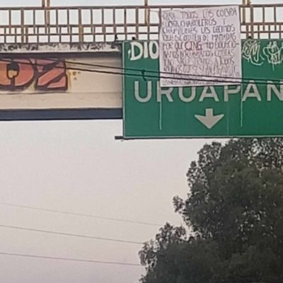 Uruapan, Michoacán. La mañana de este domingo un hombre ejecutado a tiros fue localizado en una banca de la plaza de la colonia Zumpimito, al sur de la ciudad de Uruapan, donde los homicidas colocaron también una cartulina con un mensaje que versa sobre la pugna entre grupos delincuenciales rivales.